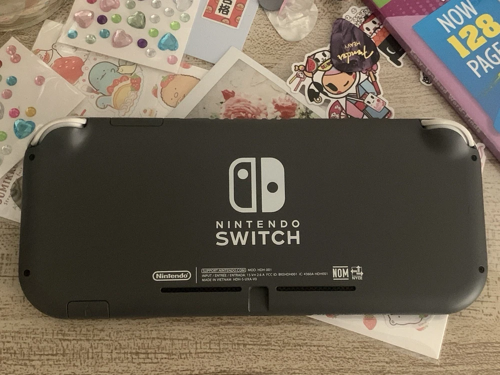 This is a Nintendo Switch Lite handheld system in gray color with a 32 GB storage capacity. Comes with charger.