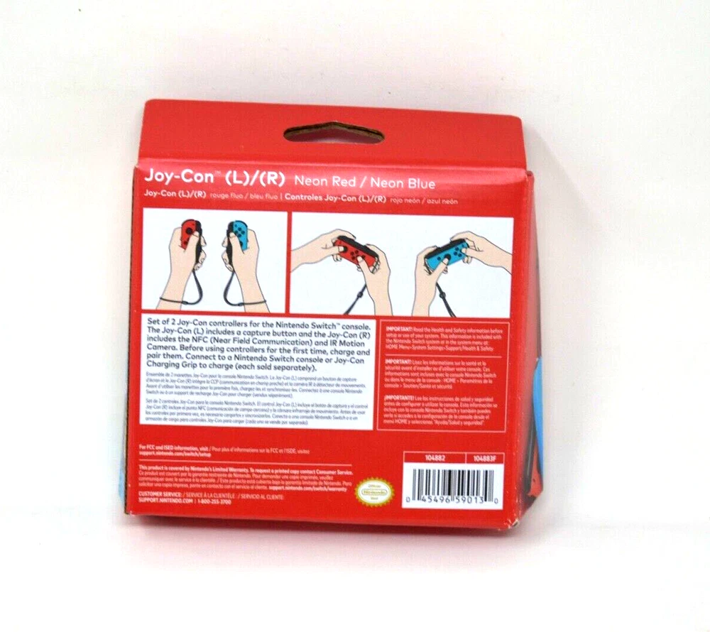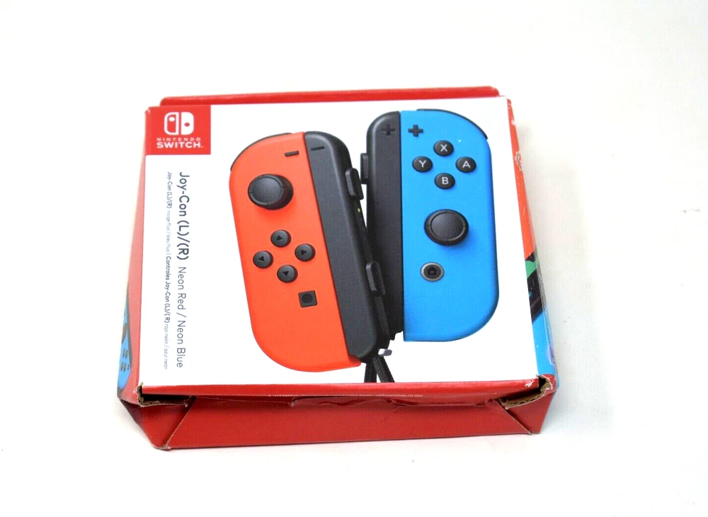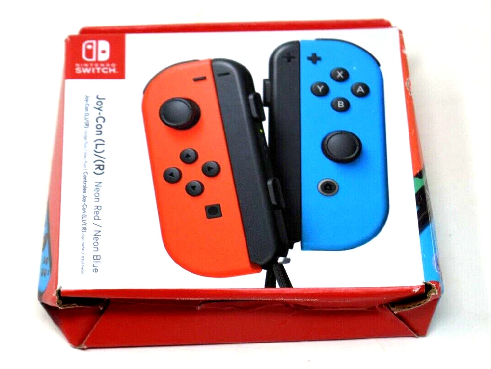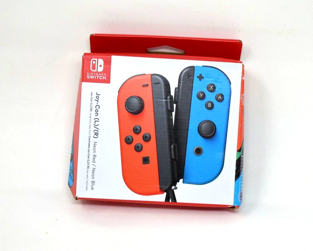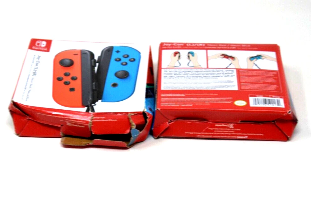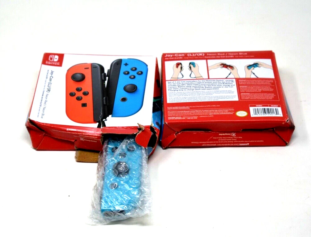 Nintendo Switch OEM Joy-Con Left/Right Controller Red/Blue NEW Dmg Box Controllers are NEW and UNUSED. Box shows DMG handling, shelf wear. (1) Box Nintendo Switch OEM Joy-Con Left/Right Controller Neon Red/Neon Blue