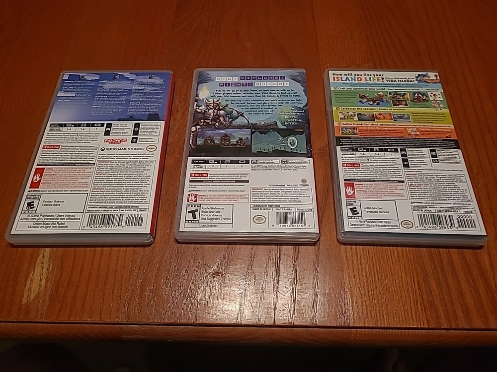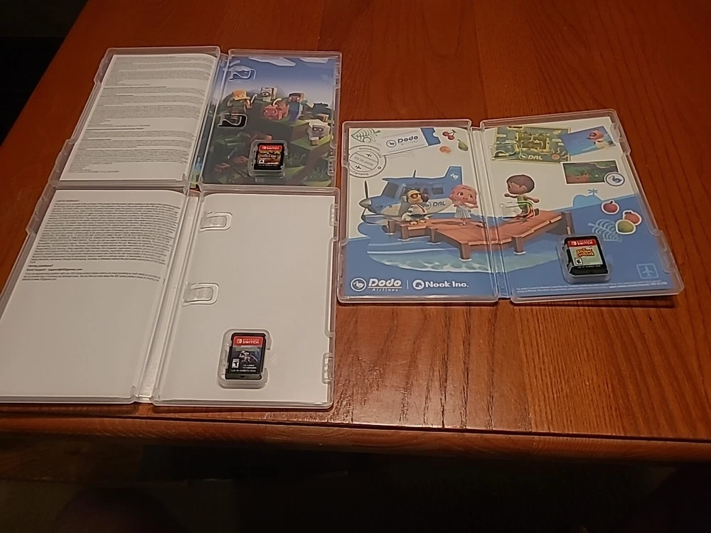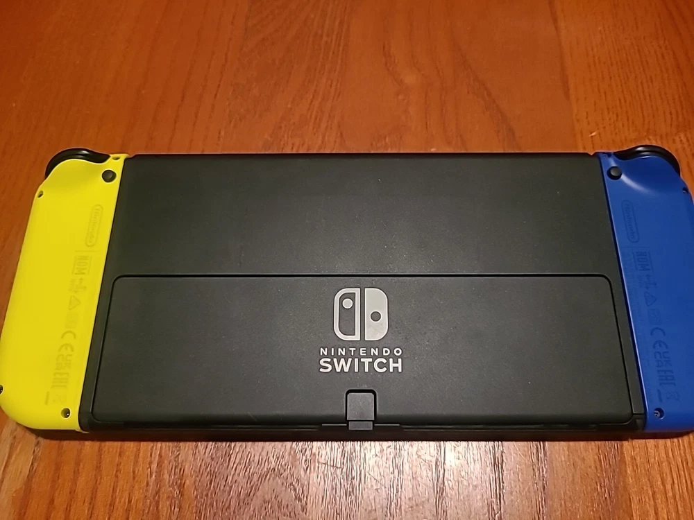 Nintendo Switch Oled Bundle The Console: Includes an OLED model switch, the dock, the power adapter, an HDMI cord, a joycon grip, joycon straps, and a set of joycons. Everything is in good condition. There is some residue on the back of the switch from a sticker I used to have on there. The screen has no scratches that I'm able to see. Includes the original box, but not the interior packaging. There is a 128 GB micro SD already installed. ***THIS DOES NOT INCLUDE THE ORIGINAL WHITE JOYCONS, ONLY THE BLUE/YELLOW ONES SHOWN*** Accessories: The console has a glass screen protector already installed. An Atrix carrying case is included. It also includes a charging station that can hold 4 joycons or 2 pro controllers. Games: Includes Minecraft, Terraria, and Animal Crossing New Horizons. This was my personal console; I did my best to keep it clean and in good condition. It has already been factory reset and may need to be updated on startup. Everything will be packaged with the utmost care. Feel free to reach out with any questions or concerns! Open to offers!