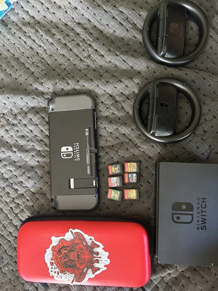 Introducing the Nintendo Switch V.2 64GB console bundle, perfect for gamers of all ages. This handheld system comes in a sleek gray color and includes Wi-Fi capability and internet browsing for an immersive gaming experience. With a storage capacity of 64GB, you can store all your favorite games and media in one convenient place. This Nintendo Switch V.2 bundle also includes 6 games and 2 steering controllers, providing hours of entertainment for you and your friends. The console is region-free, making it perfect for international gamers. Upgrade your gaming setup with this fantastic Nintendo Switch V.2 bundle today!