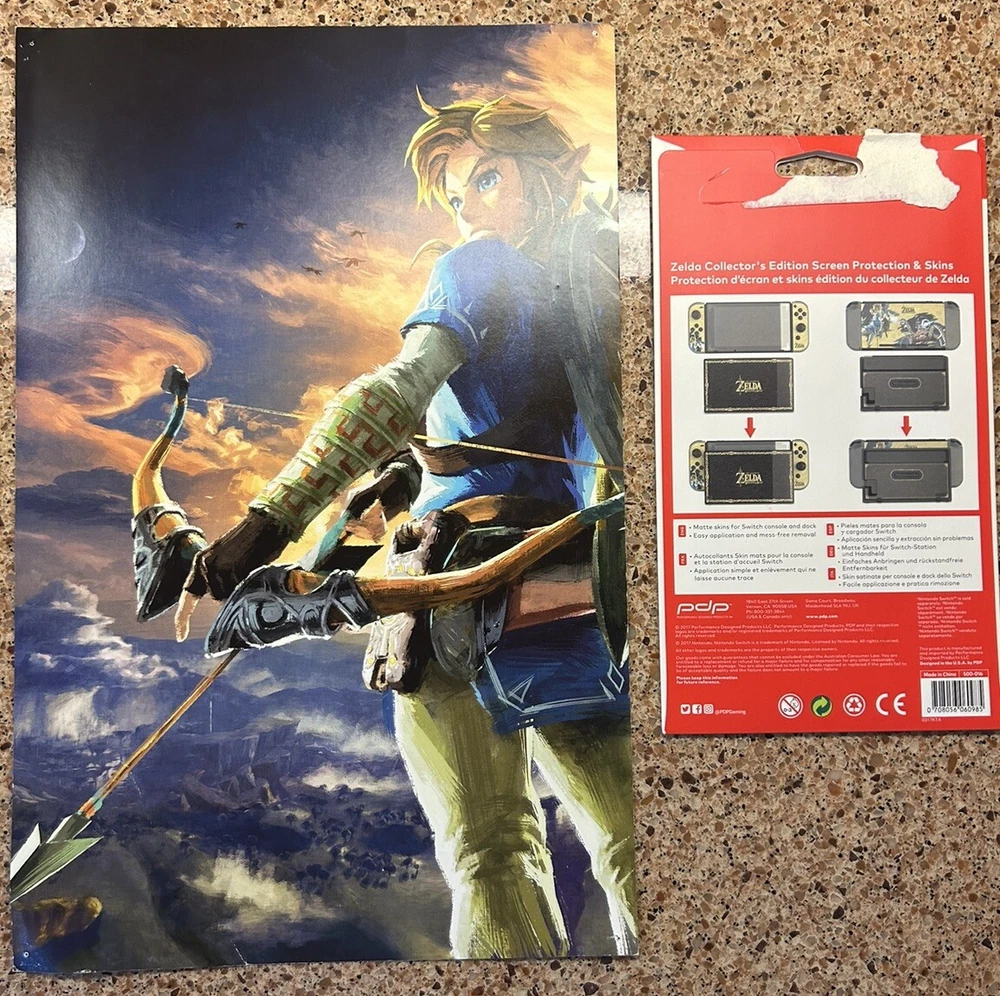 This skin /screen protector pack is brand new plus an added collectable game poster, plus the switch video game all in one bundle! See pictures for details!