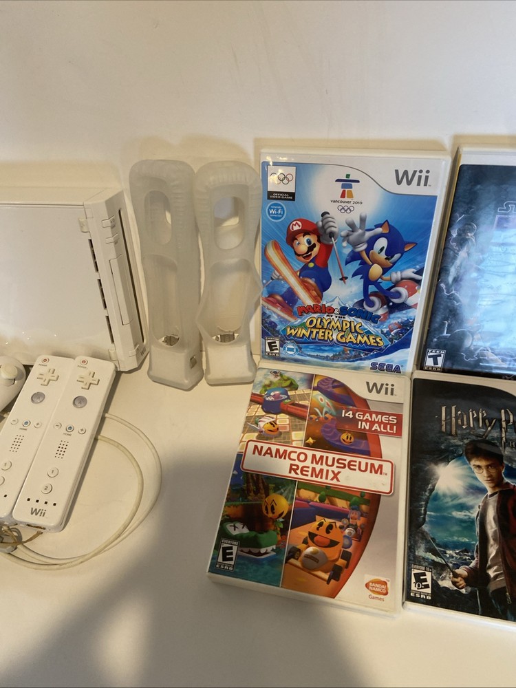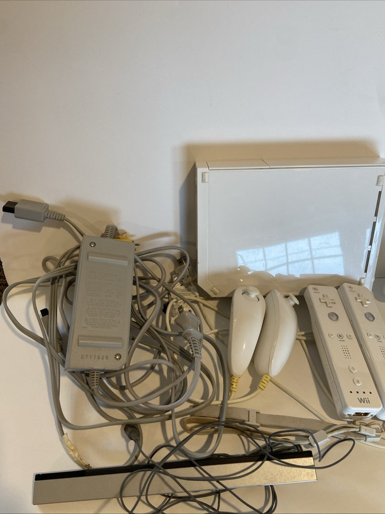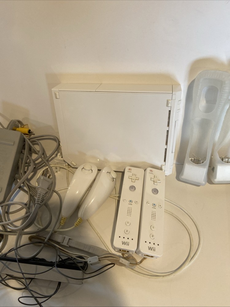 Nintendo Wii Console Bundle with 2 Controllers, Nunchucks, Motion Sensor, Manuals, and 4 Games
