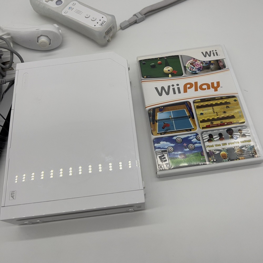Nintendo Wii White Console Bundle W/ Wii Play RVL-001 GameCube Compatible Tested and working. READY TO PLAY