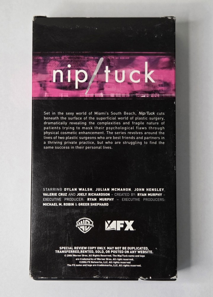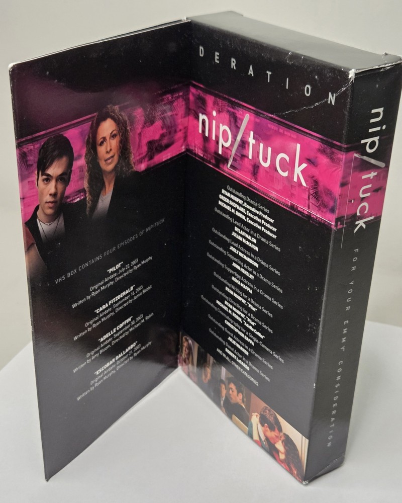 The Nip/Tuck VHS Screener 2004 Emmys For Your Consideration FX Medical Drama is a rare and collectible VHS tape featuring the popular medical drama series "Nip/Tuck." Produced by 20th Century Fox, this special edition includes exclusive content related to the show's Emmy nominations and recognition. With English language options and a sub-genre focused on medical themes, this VHS screener is a must-have for fans of the genre and collectors alike.
