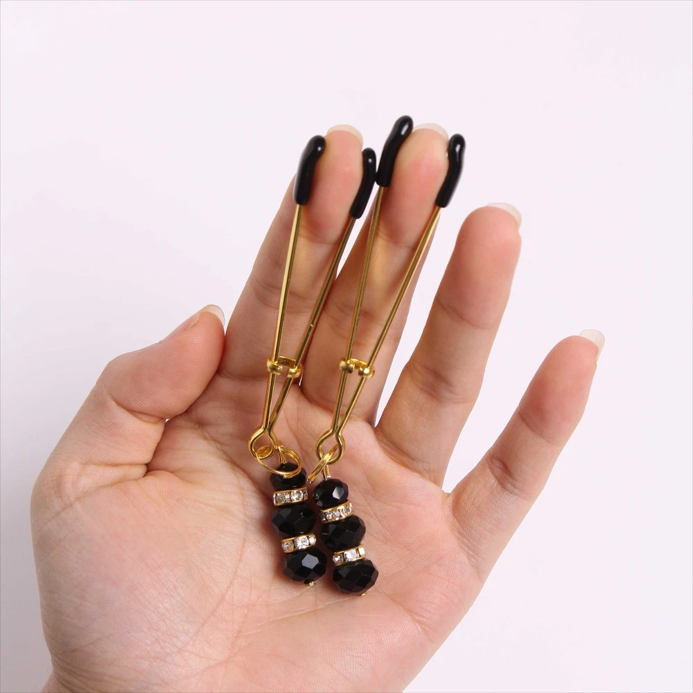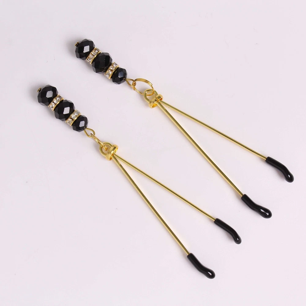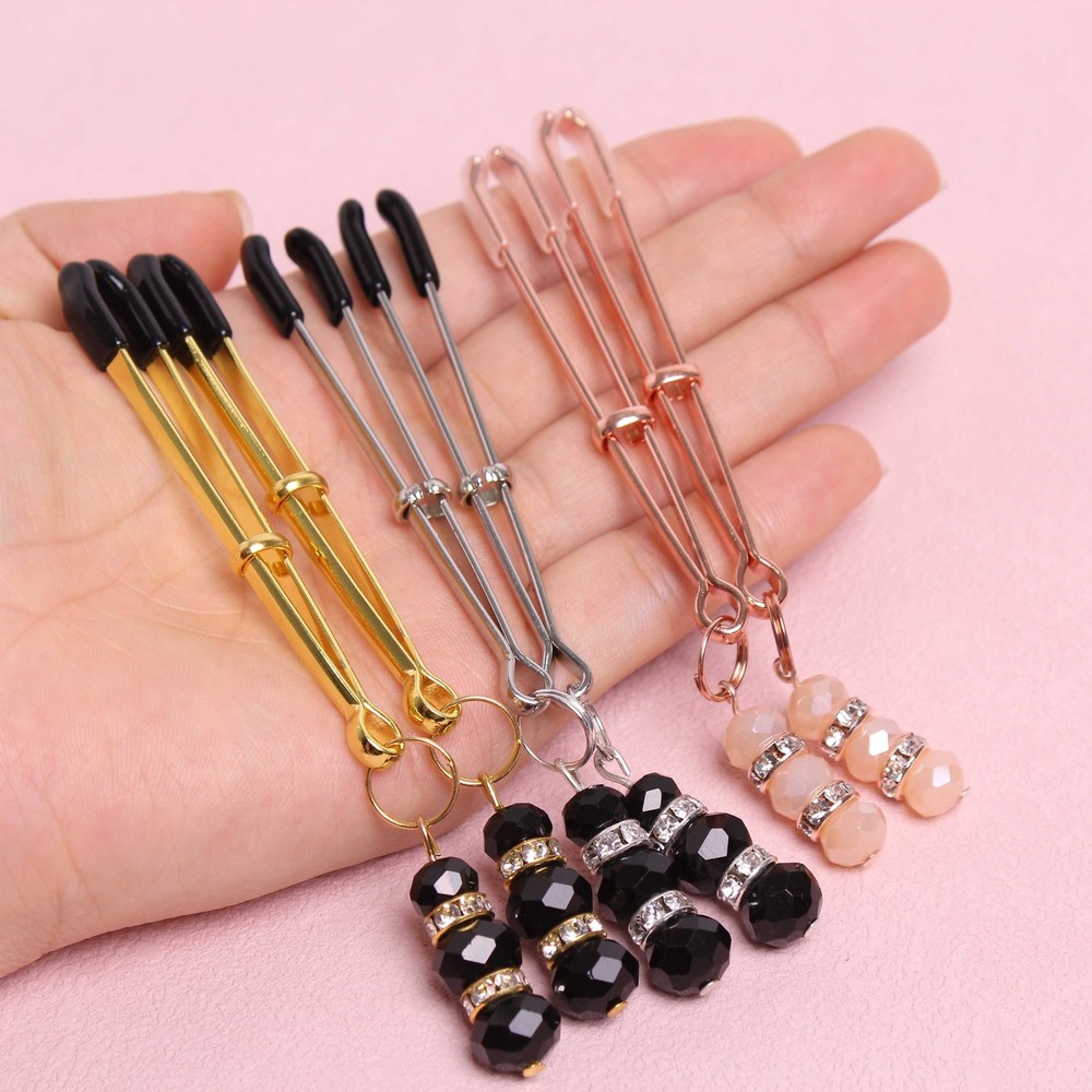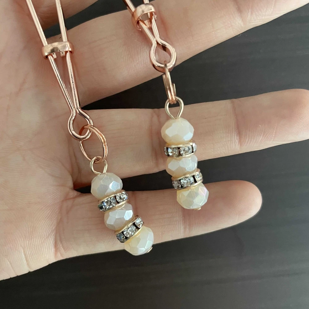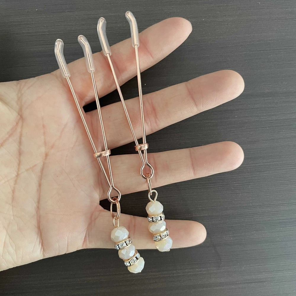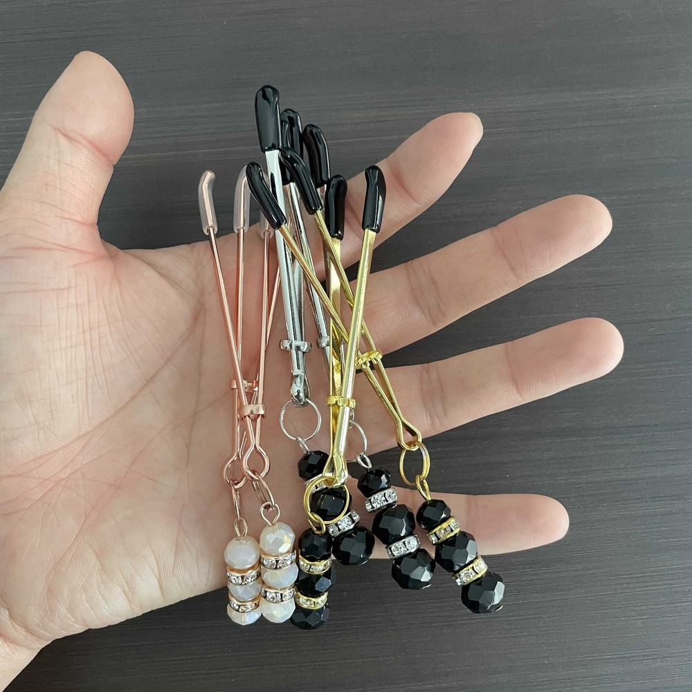 Private Shipping Feature: Two sensual Breast clamps with artificial jewelry. These Breast clamps come with rubber tips to protect the nipple Specification: Item:Breast Clamps Material: Metal & Rubber Size: 10.5cm weight: 14g Package List: 2 x Breast Clamps(1 Pair)