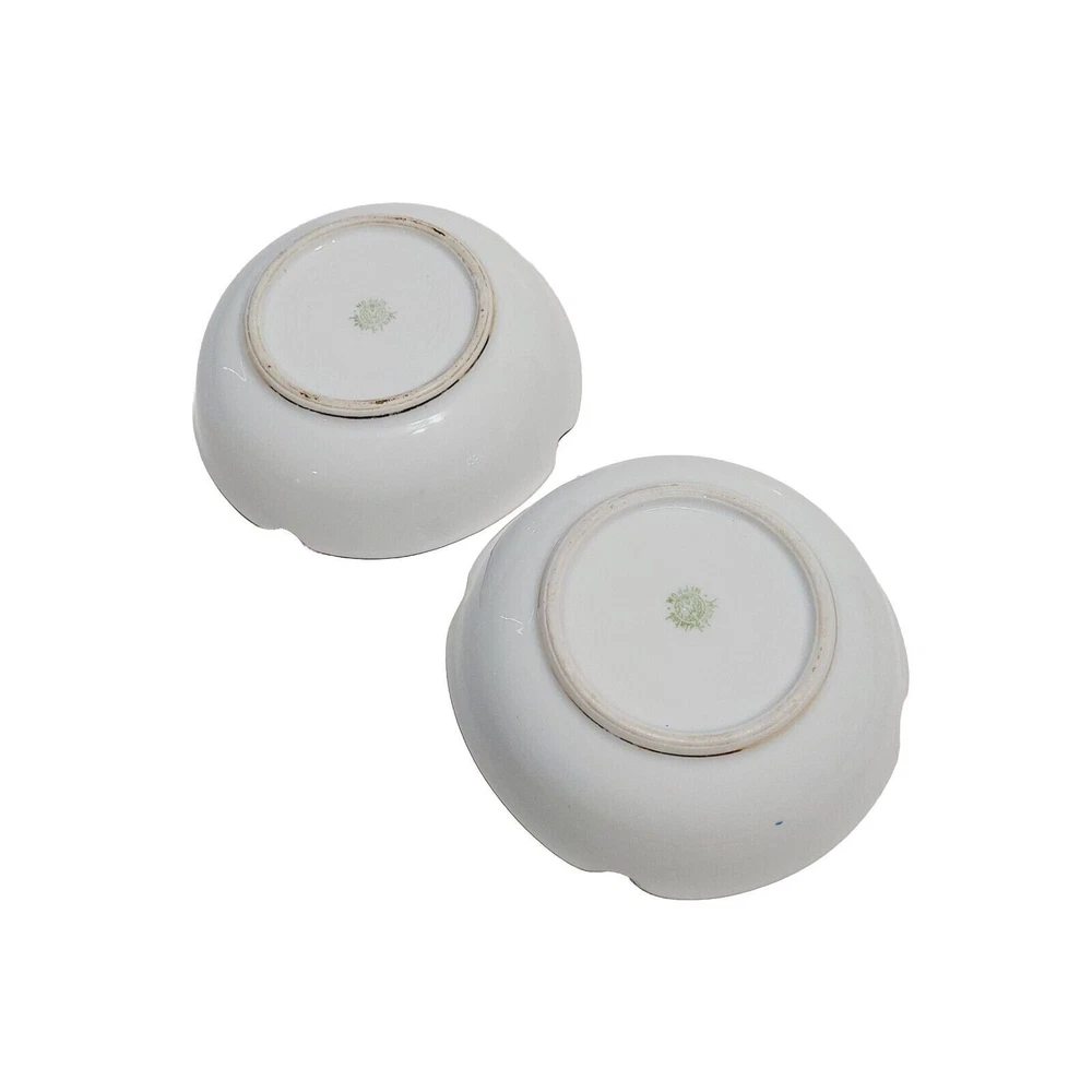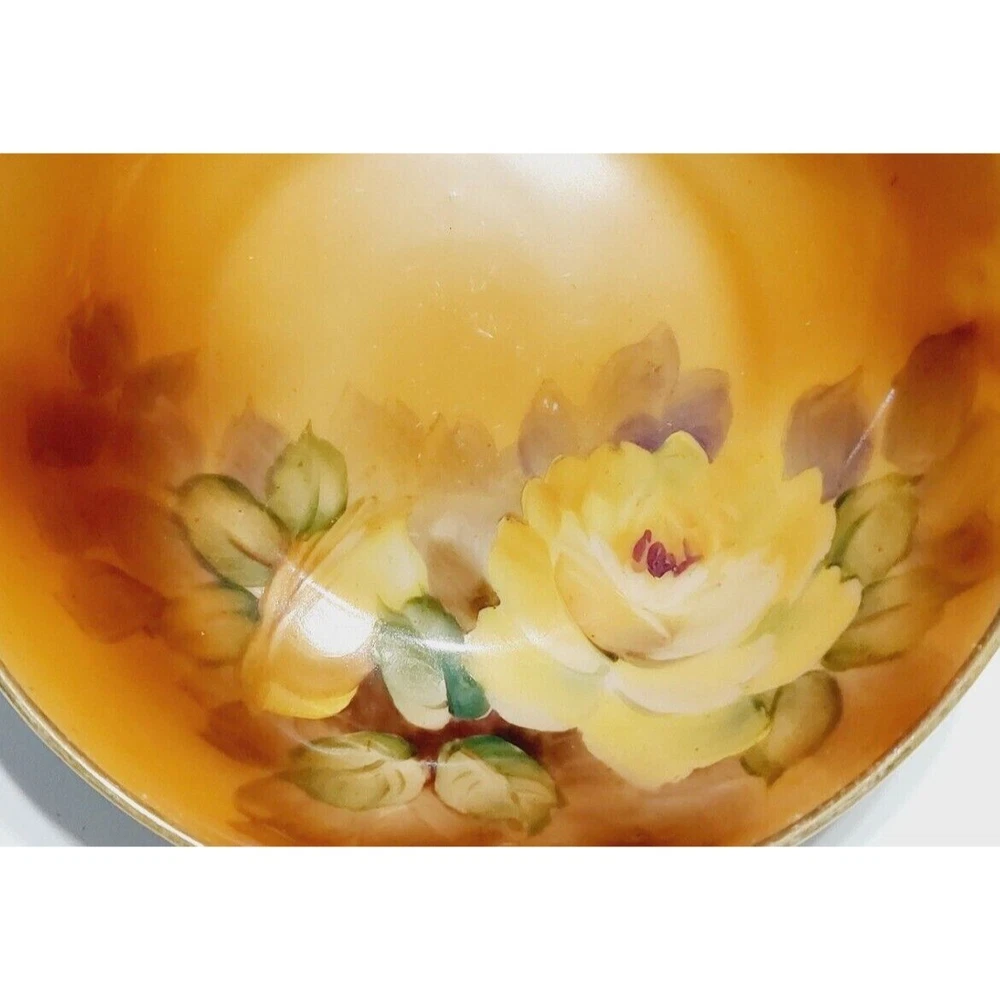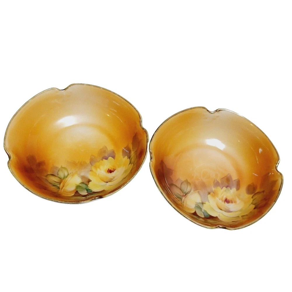 Nippon Bowl Porcelain Brown Yellow Roses Crimped Edges Hand Painted Set Of 2