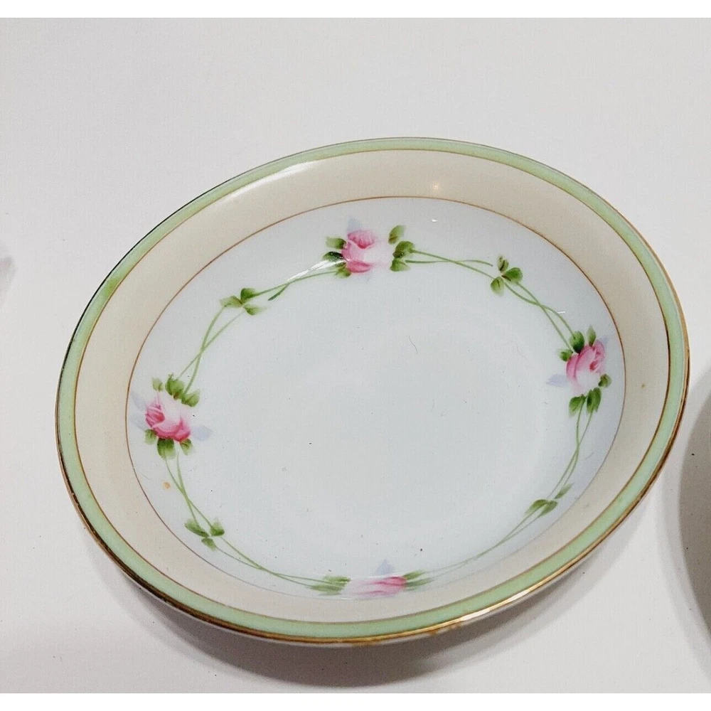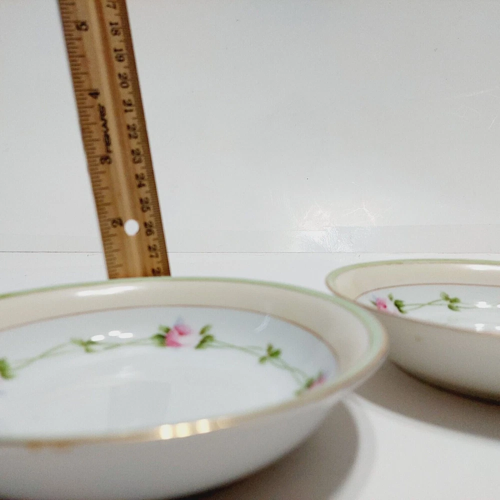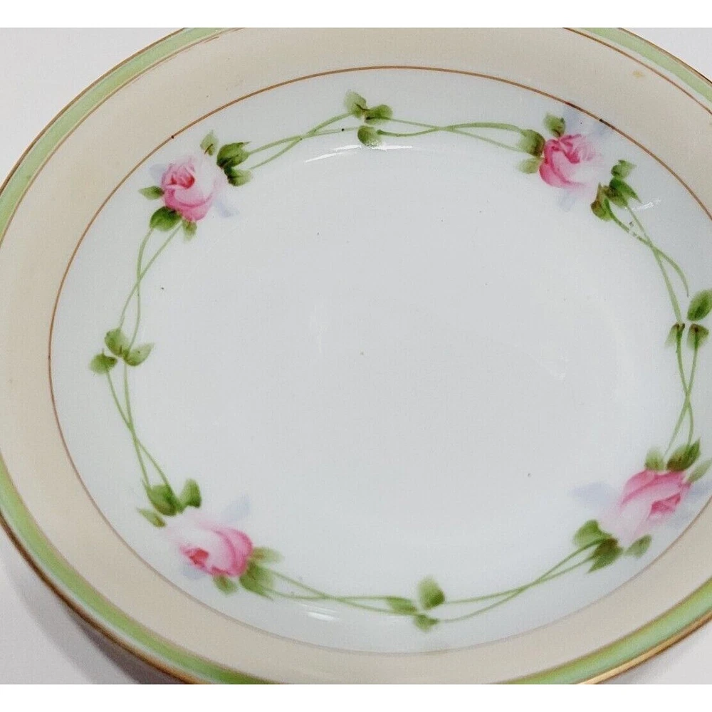 Nippon Bowls pink roses cream band gold trim hand-painted 5" Shallow