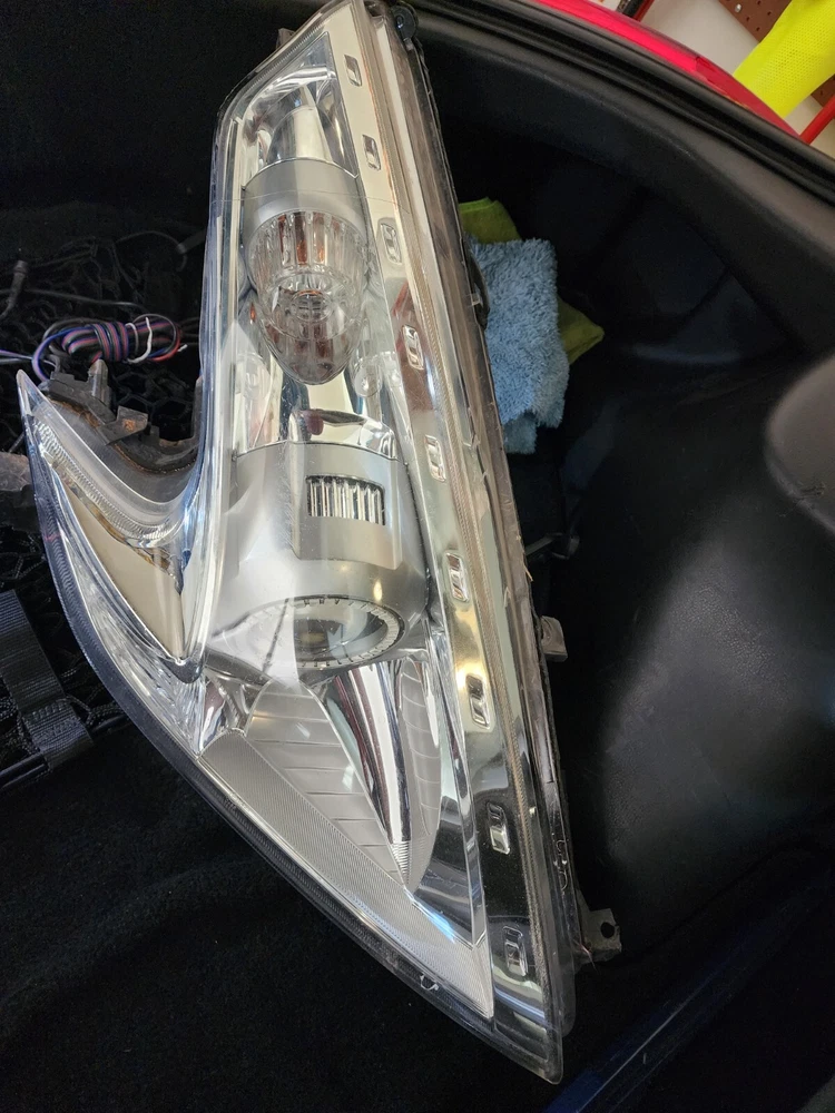 Passenger side is Grade B built. Not perfect. But seals most of the water away and at worst will have a haze for a few days.Driver side was involved in an accident and destroyed the Morimoto lenses and partially broke some parts on the inside including side marker housing and some chrome bits. Installed Morimoto LED boomerangs with signal function and halo's from Oracle Lighting.However, I would say the halo's are only a minor bonus as they cannot show white LED's consistently and have some color LED's from the RGB spectrum burned out. Rebuilt in 2021. Will include all the bulbs including HID, Side markers, and blinker bulbs.