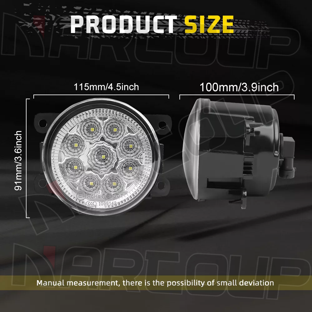 Type: Fog Light Brand: Nartoup Color Temperature: 6000K Technology: LED Wattage: 55 W Manufacturer Warranty: 5 Years Number of Bulbs: 2 Reference Number6: for Suzuki vehicles using part#990E0-65J36-000 Mounting Style: Screws Reference Number2: for Jaguar vehicles using part#XR837532 Reference Number3: for Nissan vehicles using part#26154-EA500 84501AJ00A Voltage: DC 9-32V ( Fit 12V,24V Vehicle ) Beam Type: FOG LIGHTS After-sale guarantee: Money back or replacement (buyer's choice) Note: Professional installation is recommended Lighting Technology: LED Placement on Vehicle: Driver Side, Front, Left, LH, Passenger Side, RH, Right Work Temperature: From -40°C to, 80°C Manufacturer Part Number: H11 Fog Light Lens Color: Clear Materials: GLASS/METAL MATERIAL Color: White Finish: Clear Lens+Black Housing Performance Part: Yes Universal Fitment: Yes It also fits many other vechicles: As long as your bulb type is the same with this Fitment Type: Direct Replacement Reference Number: 33900STKA11 4F9Z15200AA XR837532 H451SAJ100 84501AJ00A Waterproof Rate: IP67 Reference Number4: for Ford/Lincoln vehicles using part#4F9Z15200AA 3225-2050B Features: Road Legal, Rust-Resistant, Plug-and-play Reference Number1: for Acura/Honda vehicles using parts#33900STKA11 Reference Number5: for Subaru vehicles using part#H451SAJ100 Bulb Shape Code: H11 Country/Region of Manufacture: United States