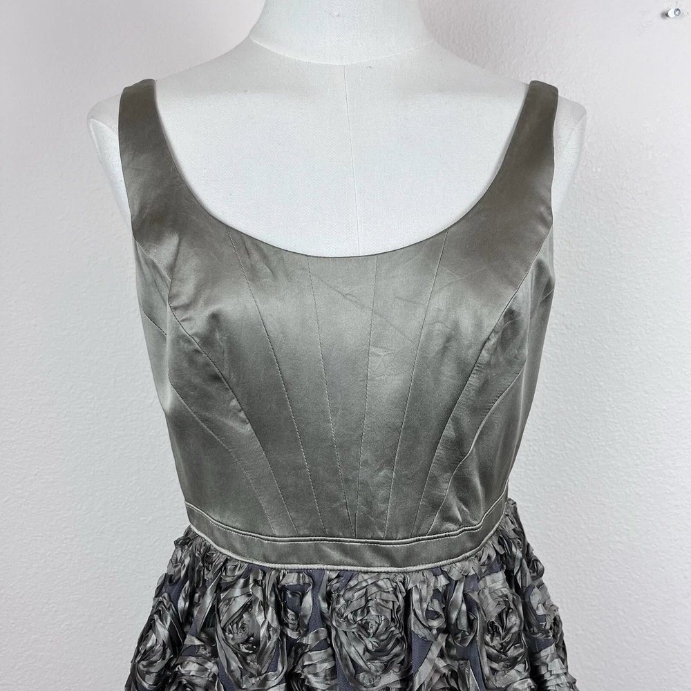 Niteline Womens Dress Silk Bodice Polyester Skirt 3D Flowers Fit and Flare Party Dress Cocktail Y2K Good used condition Measurements in photos. Size 4P