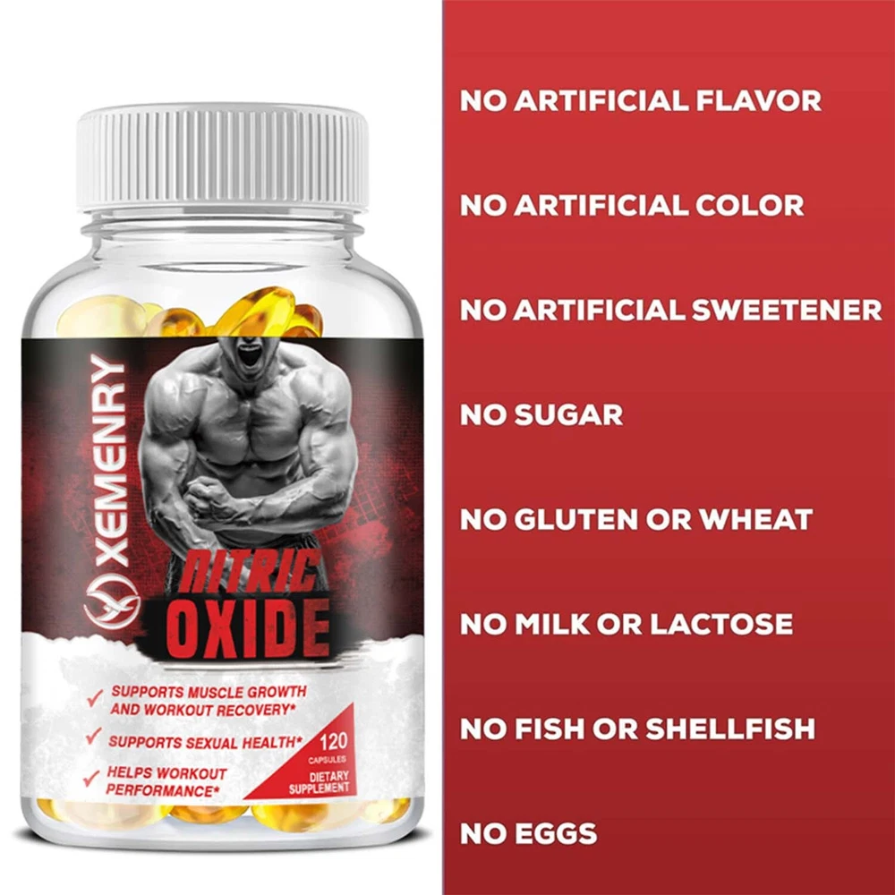 Effects: Testosterone Booster, Energy & Endurance Ingredients: L-Arginine Directions: Take 2 capsules once daily after a meal. Shipping: Ships within 48 hours on working days. Shelf life: 2 years Description: BUILD MUSCLE MASS AND RECOVERY: Nitric Oxide capsules are specially formulated with L-Citrulline and L-Arginine to support heart and muscle health, improve circulation and normal post-workout recovery. Workout Supplement - Our Nitric Oxide helps maintain energy levels during exercise. Feel the difference before, during and after your workout and get to your workout level. You can expect significant and reliable increases in energy, focus, pump, strength and muscular endurance. TRUSTED FORMULA: Our Nitric Oxide capsules are formulated and bottled under strict GMP guidelines. Third party tested to ensure quality and purity. Document