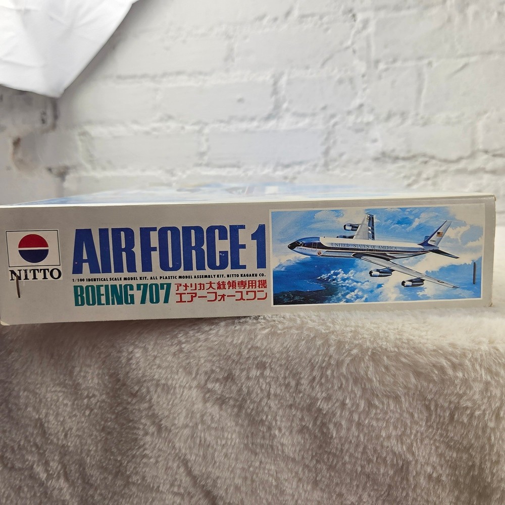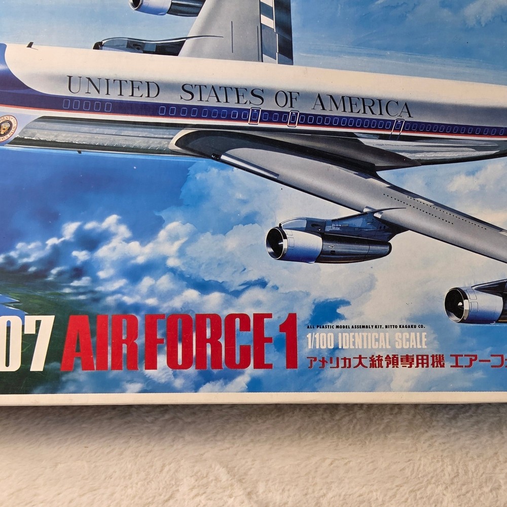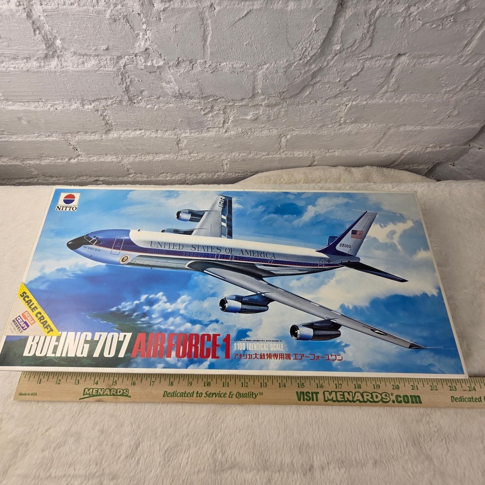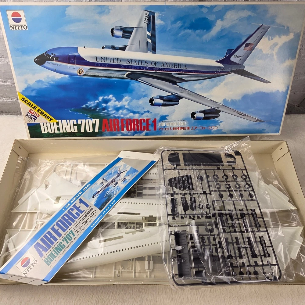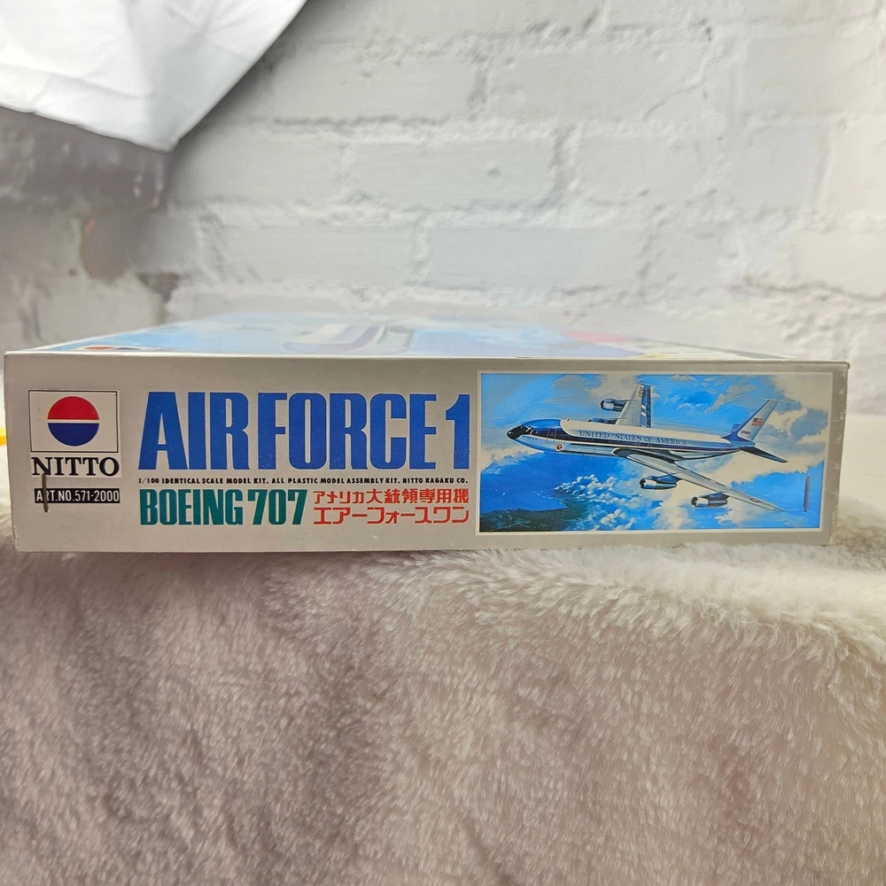 Embark on a captivating journey through aviation history with this Nitto Boeing 707 Air Force One 1/100 scale model kit. Unleash your inner modeler as you meticulously bring to life the iconic presidential aircraft, a symbol of power and prestige. Imagine the thrill of assembling each piece, knowing you're recreating a legend. This "Open Box, Sealed Parts" kit promises an immersive building experience, allowing you to perfectly capture the sleek lines and distinguished markings of Air Force One. The included decals are pristine, ready to transform your creation into a museum-quality display piece. This kit is perfect for dedicated model enthusiasts looking for a challenging and rewarding project, aspiring aviation historians eager to connect with a significant piece of American heritage, or anyone seeking a unique and impressive display for their study or office. Type: Airplane Kit Scale: 1:100 Subject: Air Force One Theme: Transportation Features: With Stand, Not Painted, Finescale Assembly Status: Unassembled Kit Keywords: Nitto, Boeing 707, Air Force One, Model Kit, Scale Model, 1/100 Scale, Plastic Model, Airplane Model, Aviation Model, Hobby Kit, Collectibles, Unassembled Kit, Presidential Aircraft, USAF