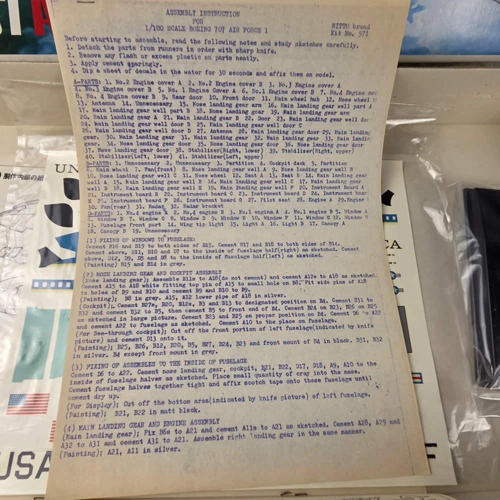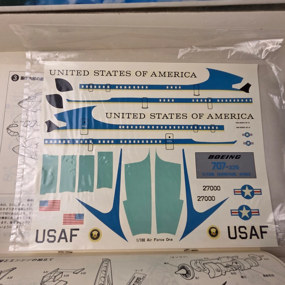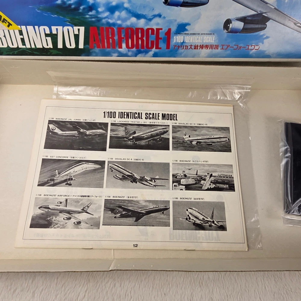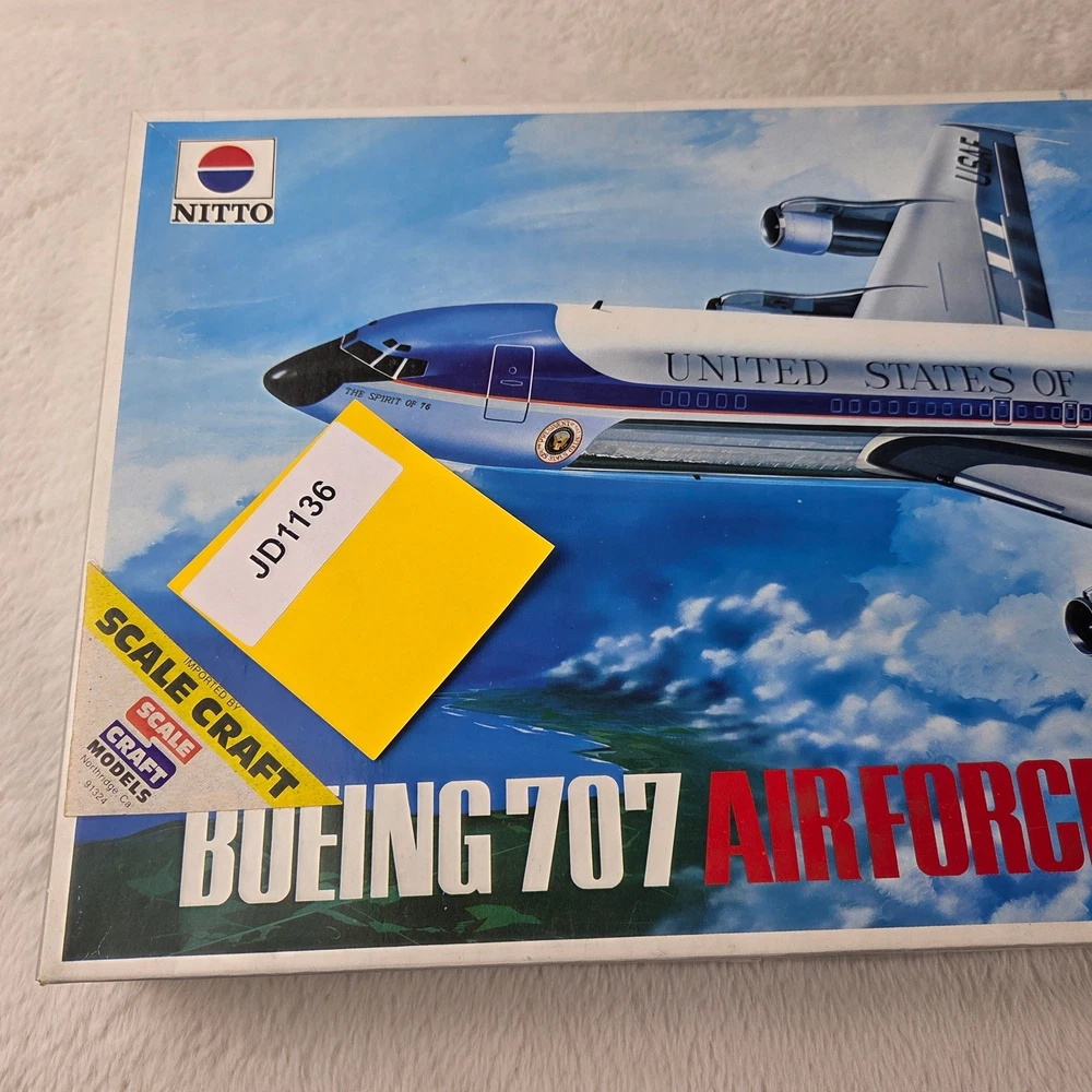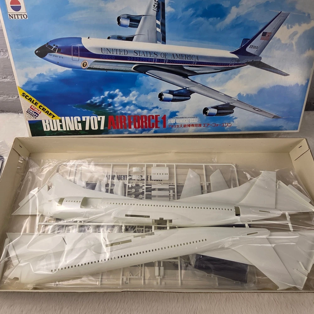 Embark on a captivating journey through aviation history with this Nitto Boeing 707 Air Force One 1/100 scale model kit. Unleash your inner modeler as you meticulously bring to life the iconic presidential aircraft, a symbol of power and prestige. Imagine the thrill of assembling each piece, knowing you're recreating a legend. This "Open Box, Sealed Parts" kit promises an immersive building experience, allowing you to perfectly capture the sleek lines and distinguished markings of Air Force One. The included decals are pristine, ready to transform your creation into a museum-quality display piece. This kit is perfect for dedicated model enthusiasts looking for a challenging and rewarding project, aspiring aviation historians eager to connect with a significant piece of American heritage, or anyone seeking a unique and impressive display for their study or office. Type: Airplane Kit Scale: 1:100 Subject: Air Force One Theme: Transportation Features: With Stand, Not Painted, Finescale Assembly Status: Unassembled Kit Keywords: Nitto, Boeing 707, Air Force One, Model Kit, Scale Model, 1/100 Scale, Plastic Model, Airplane Model, Aviation Model, Hobby Kit, Collectibles, Unassembled Kit, Presidential Aircraft, USAF