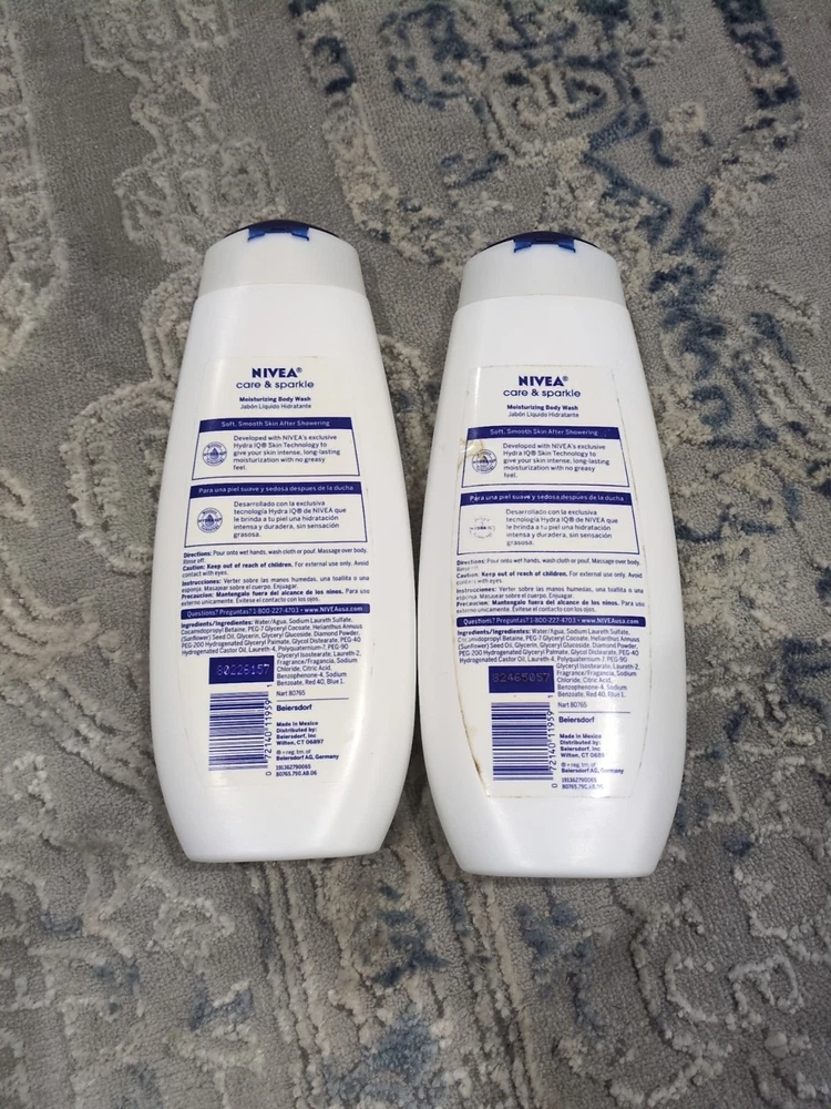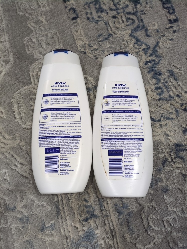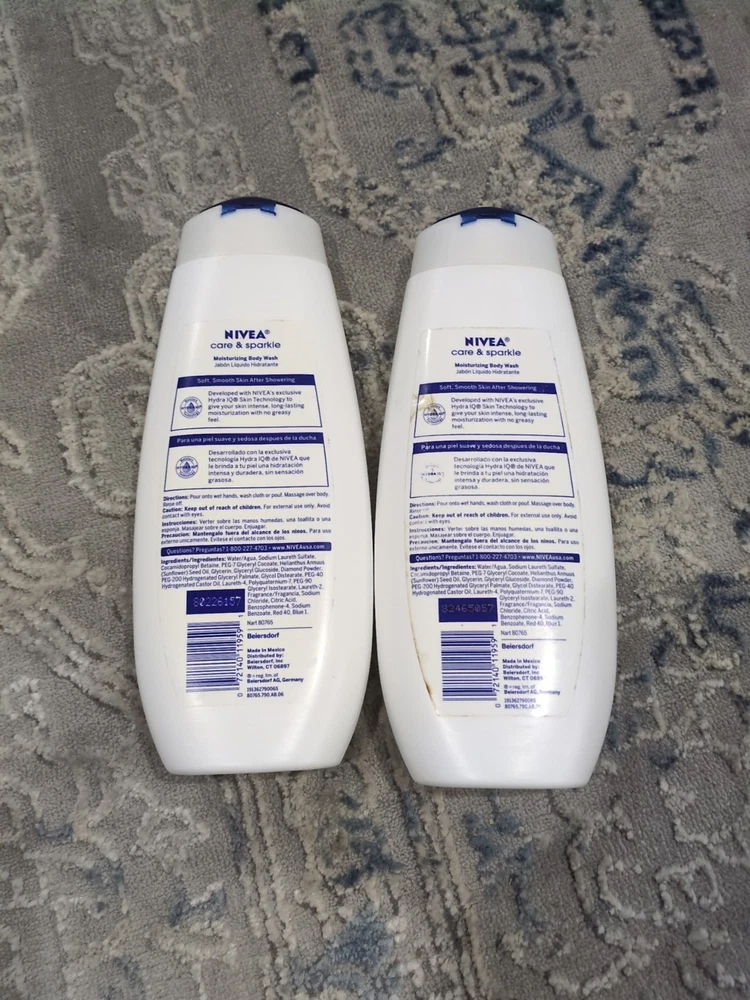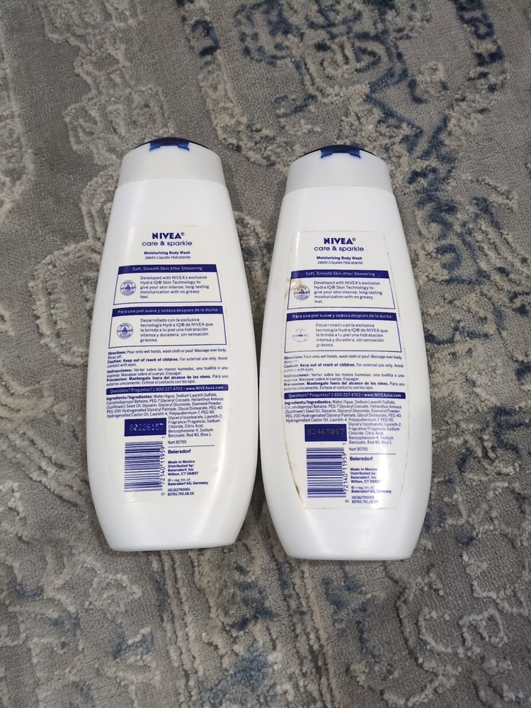 2 - Nivea ✨CARE & SPARKLE✨ Moisturizing Body Wash 16.9oz each Discontinued. Bottles and labels are not perfect