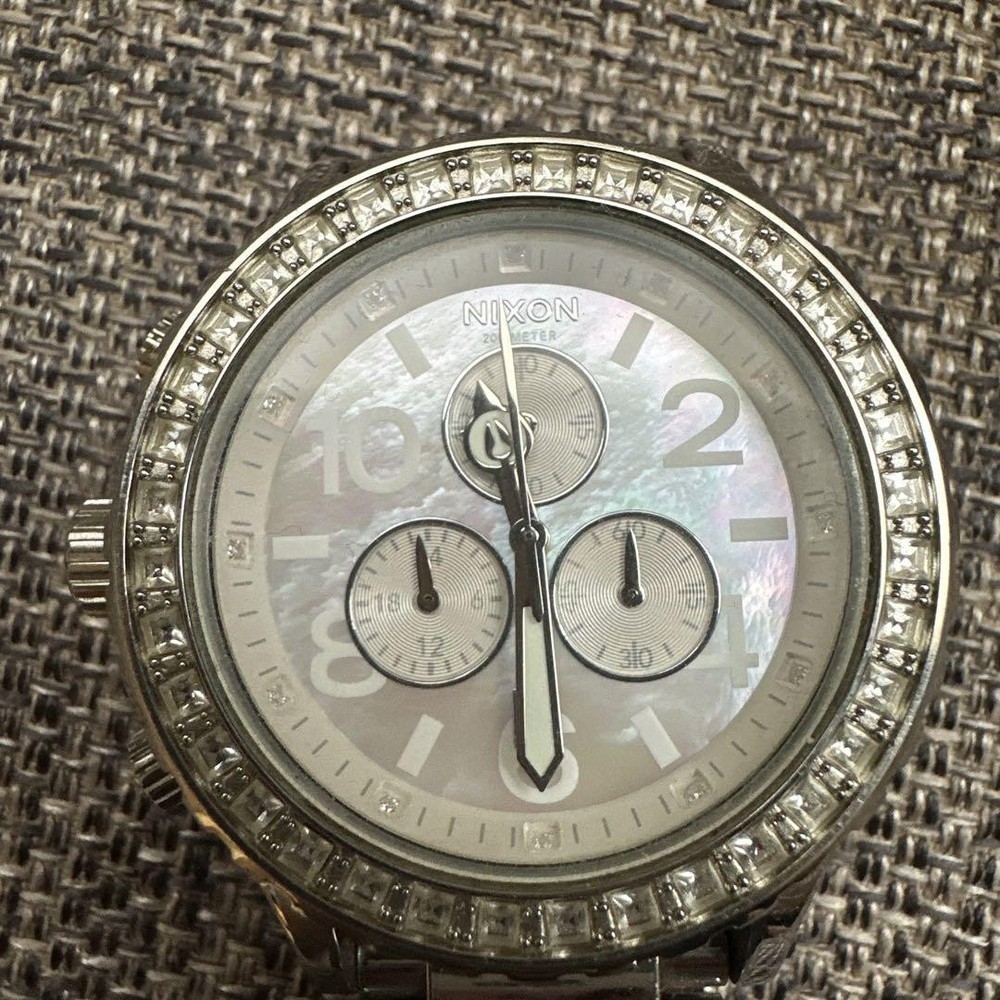 Item Title Nixon Chronograph Watch Silver Payment Supports managed payments Please pay within 5 days after auction is finished. About Us We are located in Japan. It's our pleasure to make you happy by proposing our recommend item. If you have any questions or request about items, please feel free to ask us. International Buyers - Please Note: -Import duties, taxes, and charges are not included in the item price or shipping charges. These charges are the buyer's responsibility. -Please check with your country's customs office to determine what these additional costs will be prior to bidding/buying. -These charges are normally collected by the delivering freight (shipping) company or when you pick the item up - do not confuse them for additional shipping charges. -We do not mark merchandise values below value or mark items as - gifts - The US and International government regulations prohibit such behavior. Thank you for your understanding.