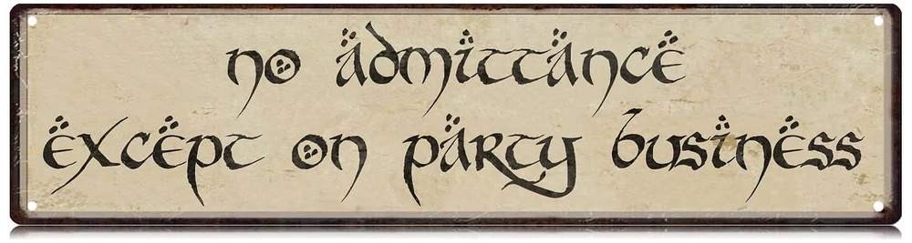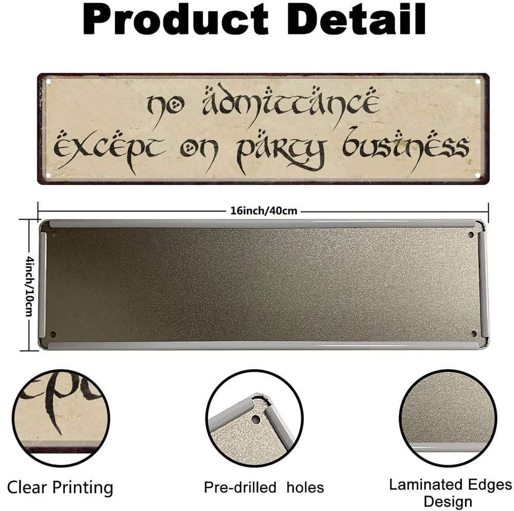 No Admittance Except on Party Business Slim Tin Sign Street Funny Metal Sign Wall Decor for Bedroom Farm Home Bar Garage Man Cave Wall Art Gift 4" by 16" Product Details Size: 16 X 4 Inch Color: No Admittance Brand: ShanXiRong EAN: 8062666065689 MPN: Does not apply UPC: Does not apply Color: No Admittance Material: Tin, Iron, Metal Theme: Words & Quotes Recommended Uses For Product: decoration in various spaces Mounting Type: Wall Mount Product Dimensions: 4"L x 16"W Shape: Rectangular Item Weight: 0.21 Kilograms Style: Casual Pre-printed: No Admittance Except on Party Business Item Weight: 7.4 ounces Manufacturer: ShanXiRong Maximum recommended load: 0.21 Kilograms Batteries required: No Perfect size: About 4x16 inches (10x40cm). Material style: Tin/metal/vintage tin logo/wall decoration, harmless, non-rusting, non-fading, recyclable. Easy to hang: Crew holes are pre-drilled at the corners for easy hanging. Mount with screws, nails, tie-wraps or wires. Sign attachment accessories are not included. Applicable place: Applicable to wall decoration bar, pub, restaurant, man cave, garage, family, cafe, kitchen, restaurant, billiards room, hotel or office. After sales service: If you feel that there are quality issues with the product, please contact us and we will consider your requirements and provide you with a satisfactory solution. Your satisfaction with the product is what we pursue. Product features:❤Can be put in mesa, or hang on the wall.❤Our decorative painted metal tin sign is hemmed to ensure safety and stability. ❤Graphics and text printed with uV-resistant inks will withstand a variety of factors and will not fade, whether it be sun, rain, or other extreme weather.❤The tin sign is just one the hundreds of high-quality wall décor products offered to help you decorate in your own unique style.❤Note: This is a post made of tinplate material, some paintings appear to have the effect of rust, it is printed up, not really rusty. Due to the light, the color may show a little different.