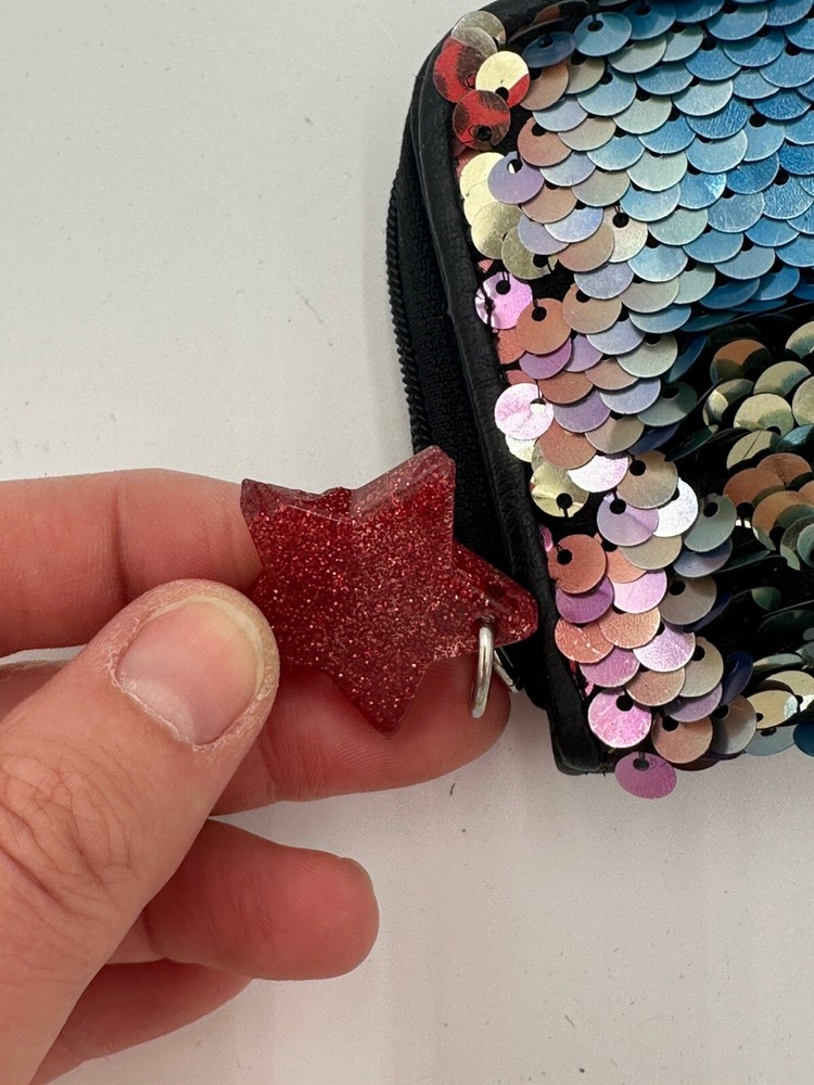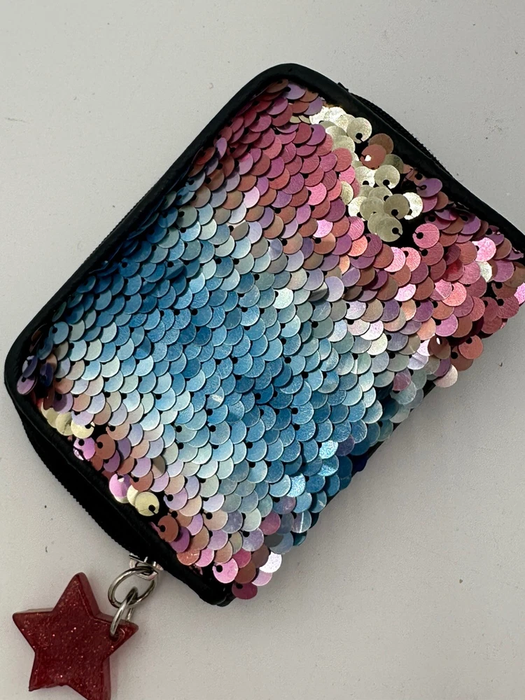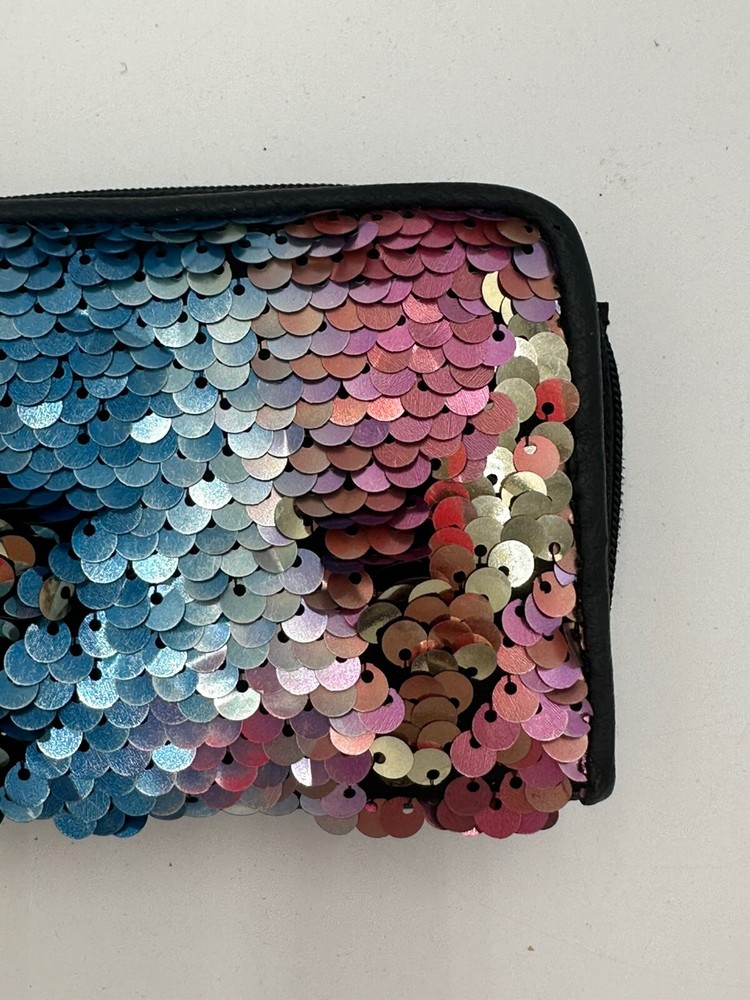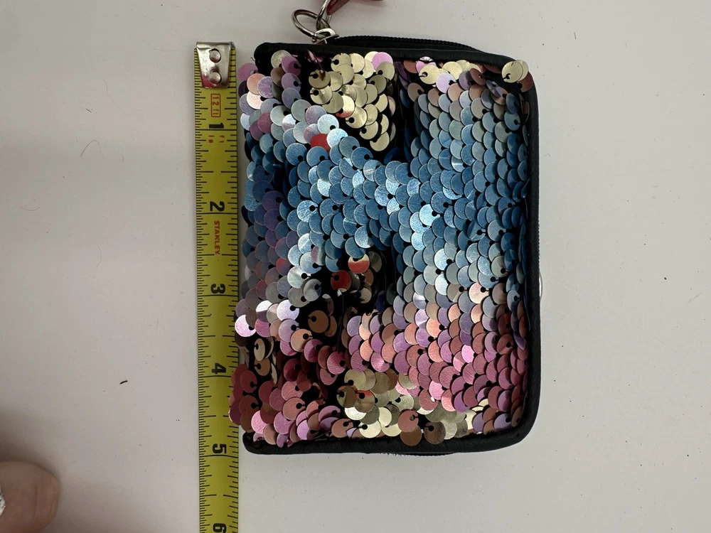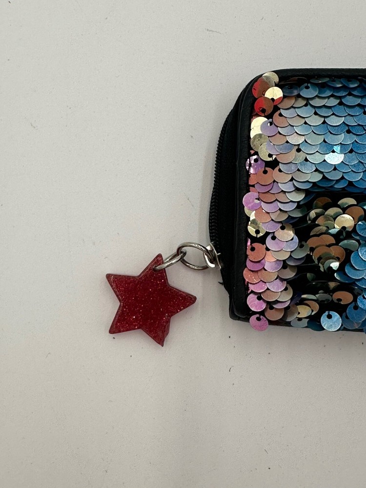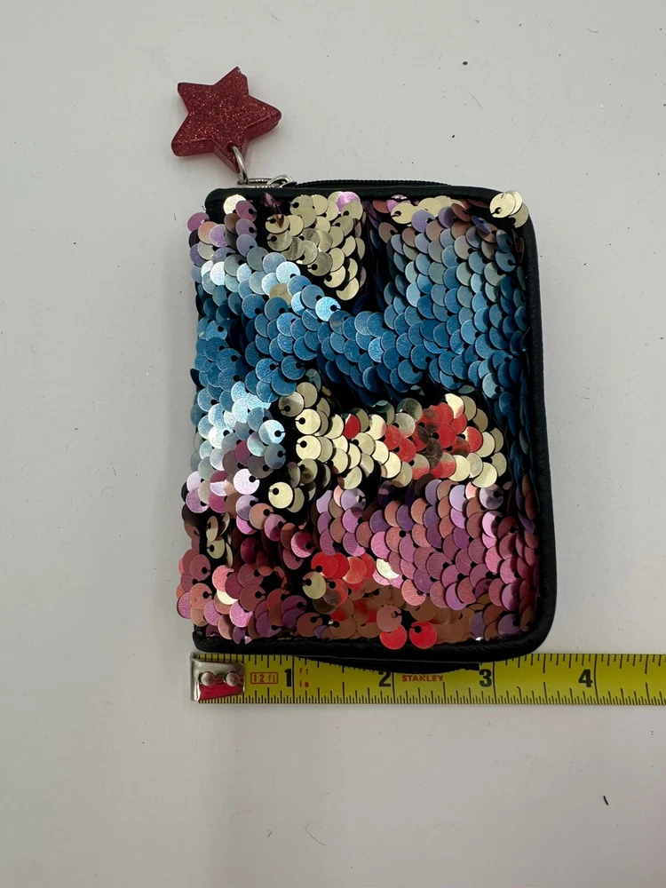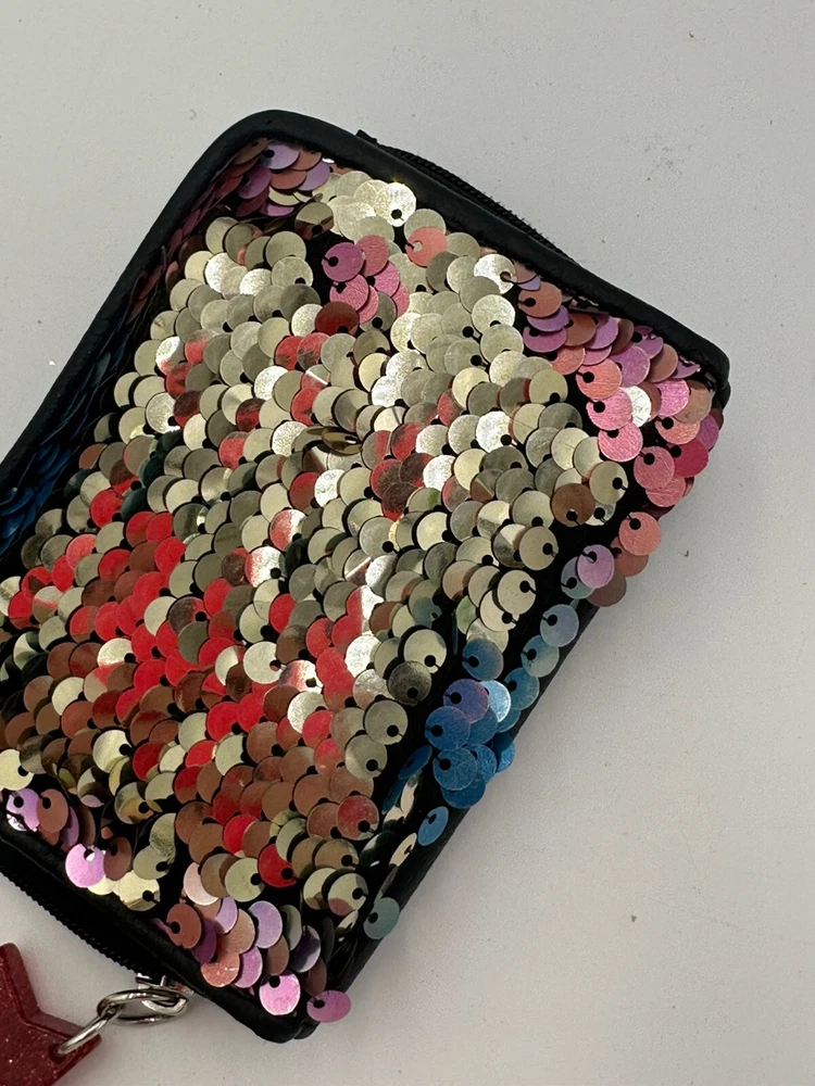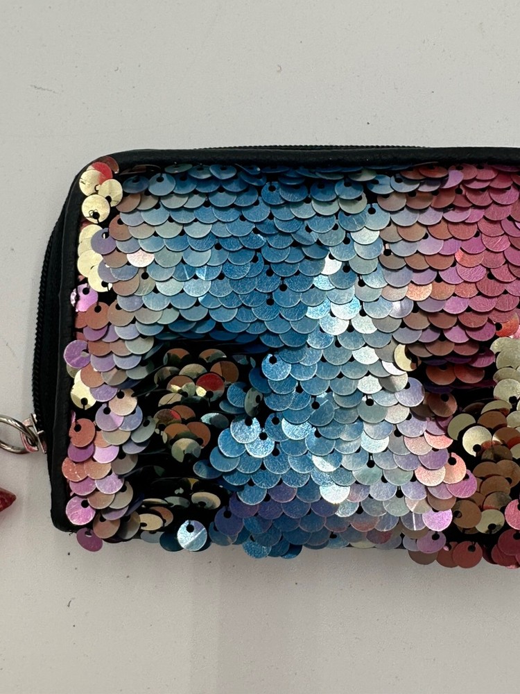 Star keychain slightly chipped see pics. This No Boundaries wallet is the perfect accessory for any woman who loves a little sparkle in her life. The wallet features a colorful rainbow design with sequin accents and comes with a star key chain for added flair. The wallet is brand new and in excellent condition, ready to be used by its new owner. It is perfect for storing all of your important cards and cash, while the sequins add a fun and unique touch to your everyday look. Don't miss out on this stylish and practical wallet, perfect for any occasion.