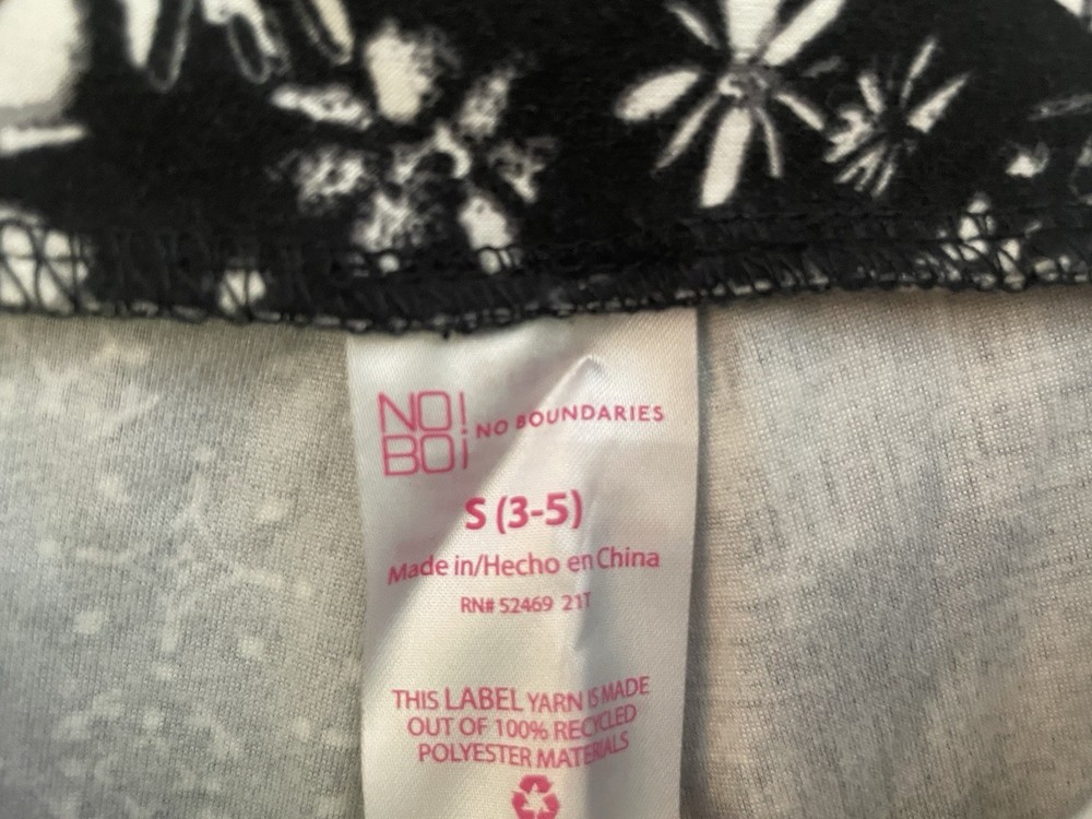 No Boundaries Women's Floral Polyester Pull On Full Length Leggings Black White S. Condition is pre-owned. Smoke free, pet free home. Shipped via USPS Ground Advantage. In very good condition. Free of rips or stains.