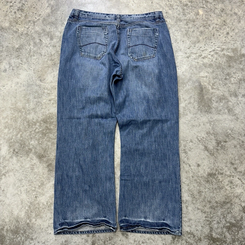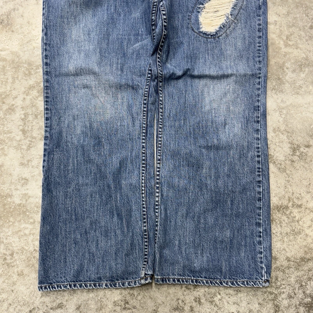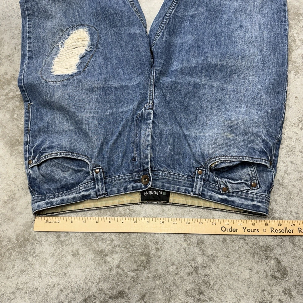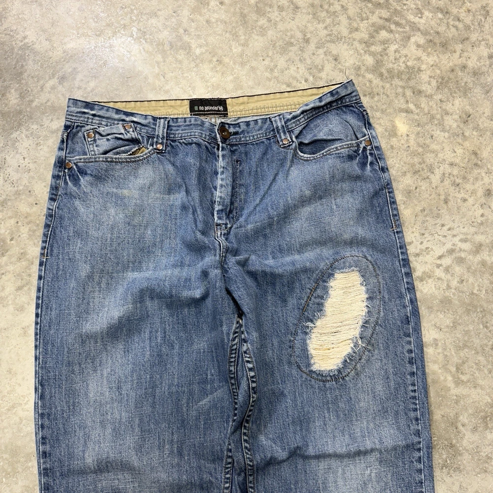 No Boundaries Y2K Baggy Jeans Mens 38x32 Wide Leg Skate Hip Hop Blue Distressed
