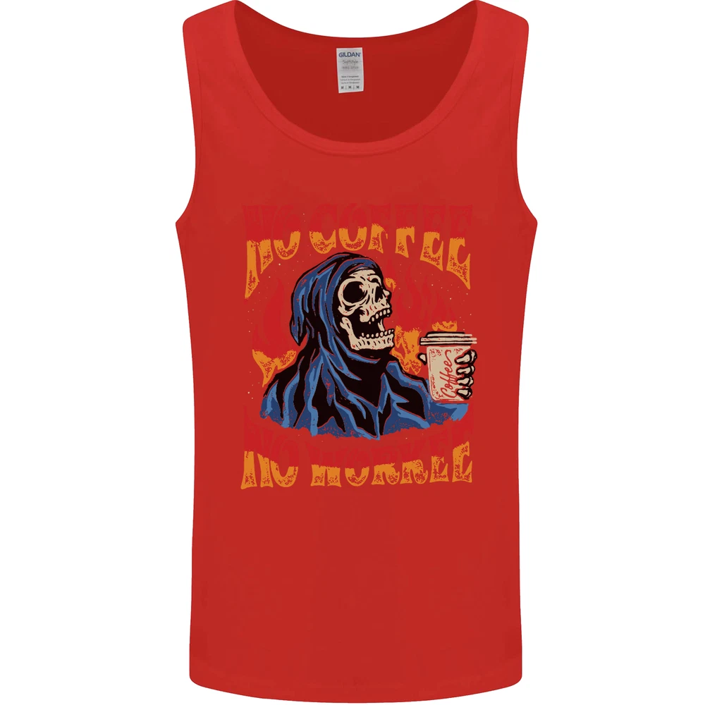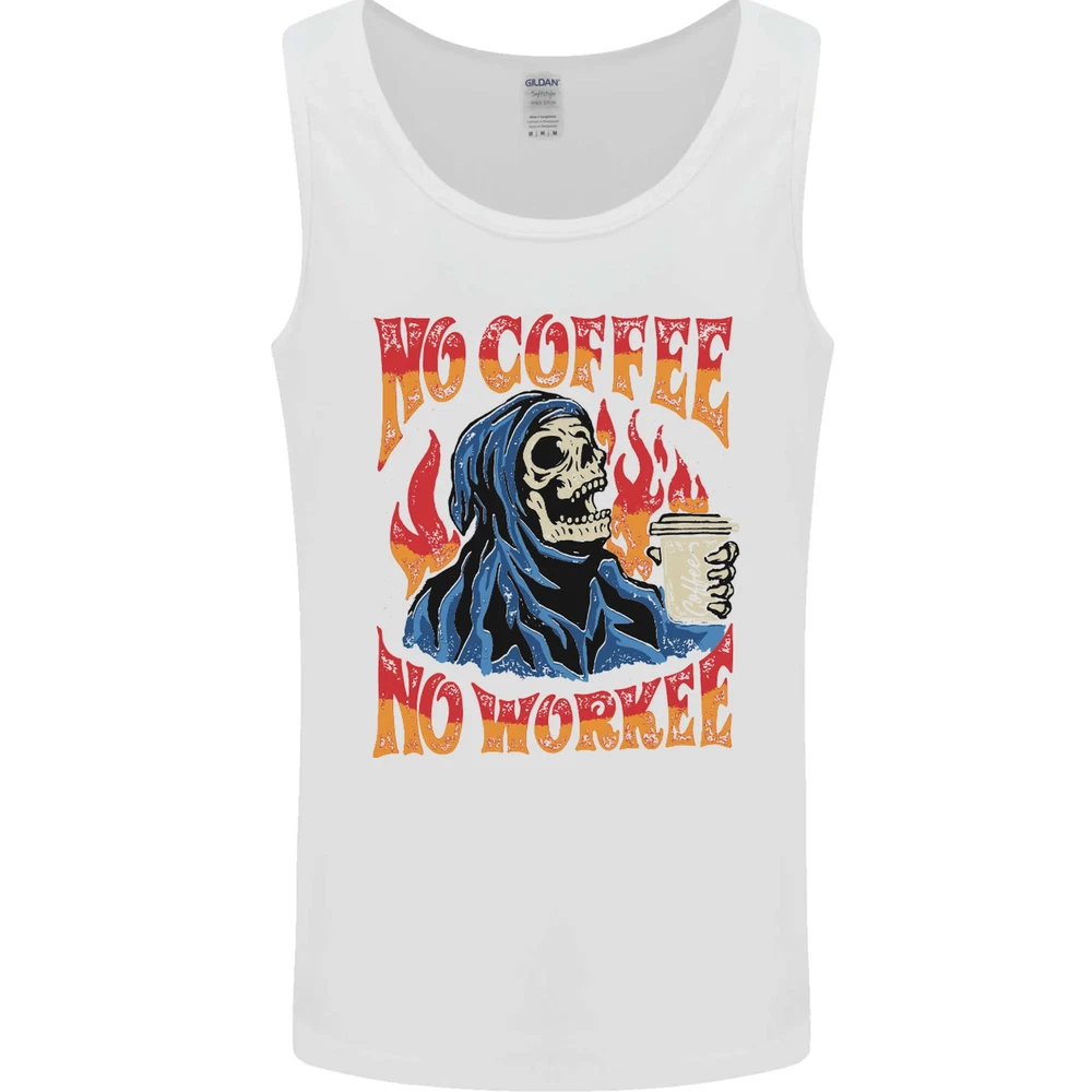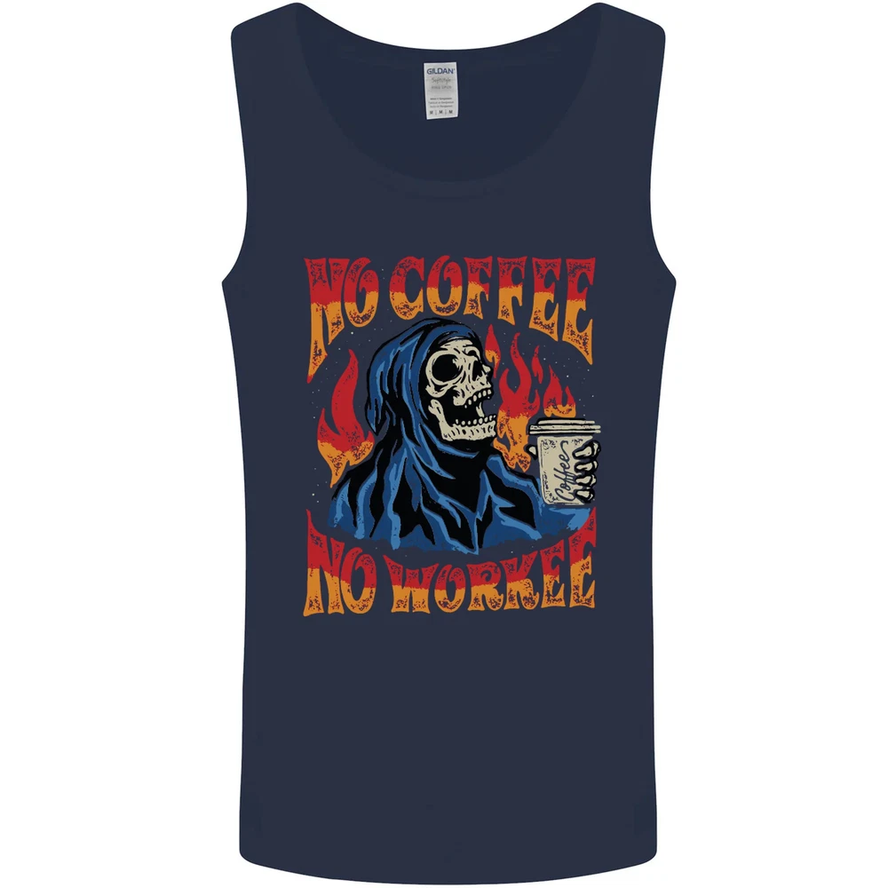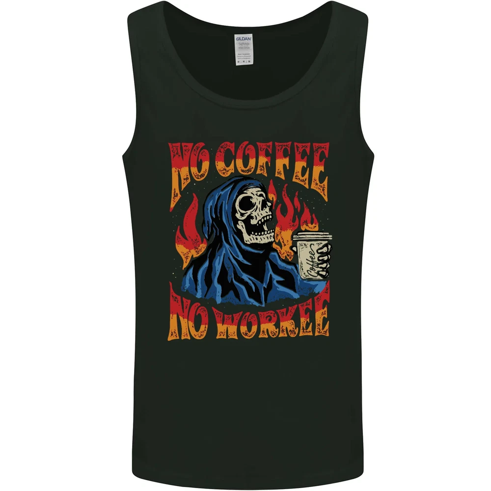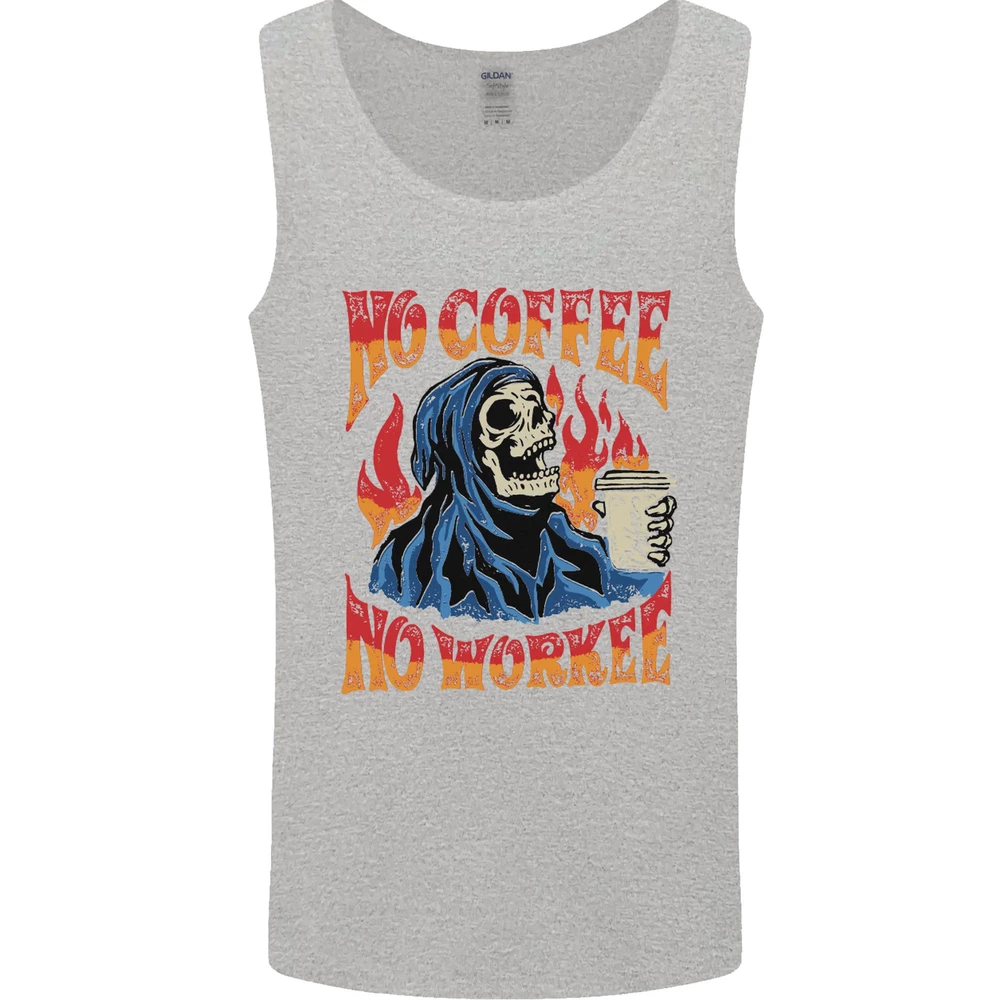 No Coffee No Work Funny Skull Grim Reaper Mens Vest Tank Top