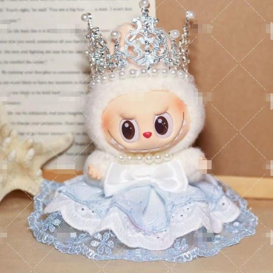 (No Dolls) Compatible Replace Clothes Blue Dress For LABUBU Crown Skirt Set