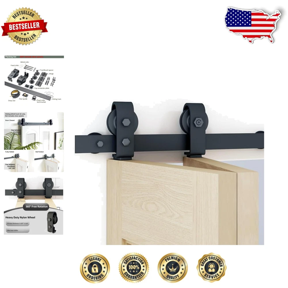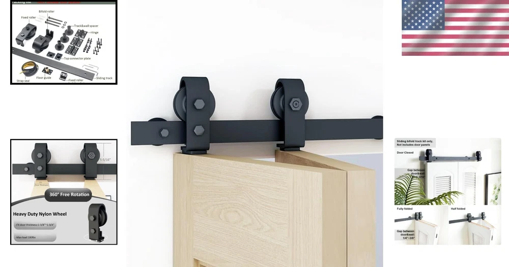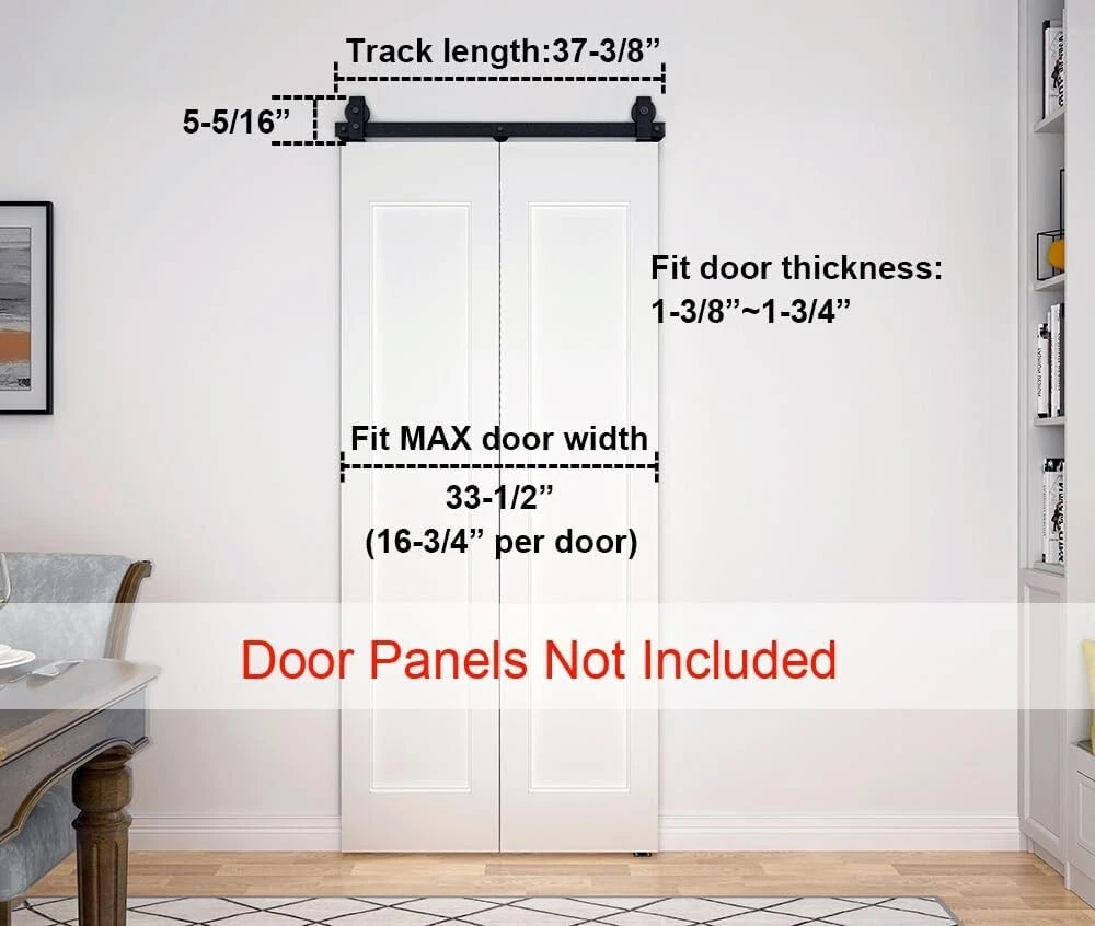 No Door Needed: 37in Bifold Sliding Barn Door Hardware, Fits Max 33in Width