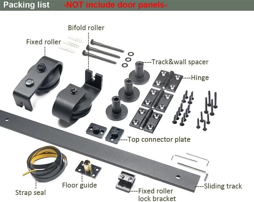 Usage: Indoor Use Only Batteries Required?: No Item Package Quantity: 1 Item Weight: 9 lb Item Width: 33 in Size: 37-3/8" Track Kit Core Type: None Battery Size: None UPC: Does not apply Fixings Supplied: Yes Smart Home Compatibility: None Item Diameter: 37-3/8 in Finish: None Installation Method: Screw-in Type: Bi-Fold Door Hardware Color: Black Style: Modern gtin13: Does not apply Suitable For: Bi-Fold Door Hardware, Sliding Door, Folding Door, Interior Door, Double Door Number in Pack: 1 Features: None Smart Home Protocol: None Batteries Included?: No Material: Carbon Steel Product Dimensions: 1.25 X 14 X 80 Inches Battery Required: No Brand: Unbranded