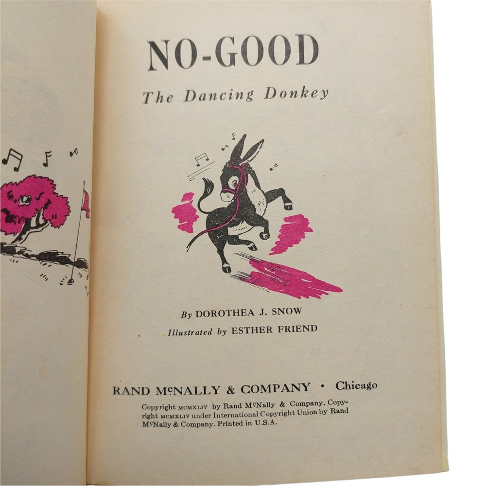No Good The Dancing Donkey Rand McNally Junior Elf Vintage Book 1944. Cover has stain, writing on inside