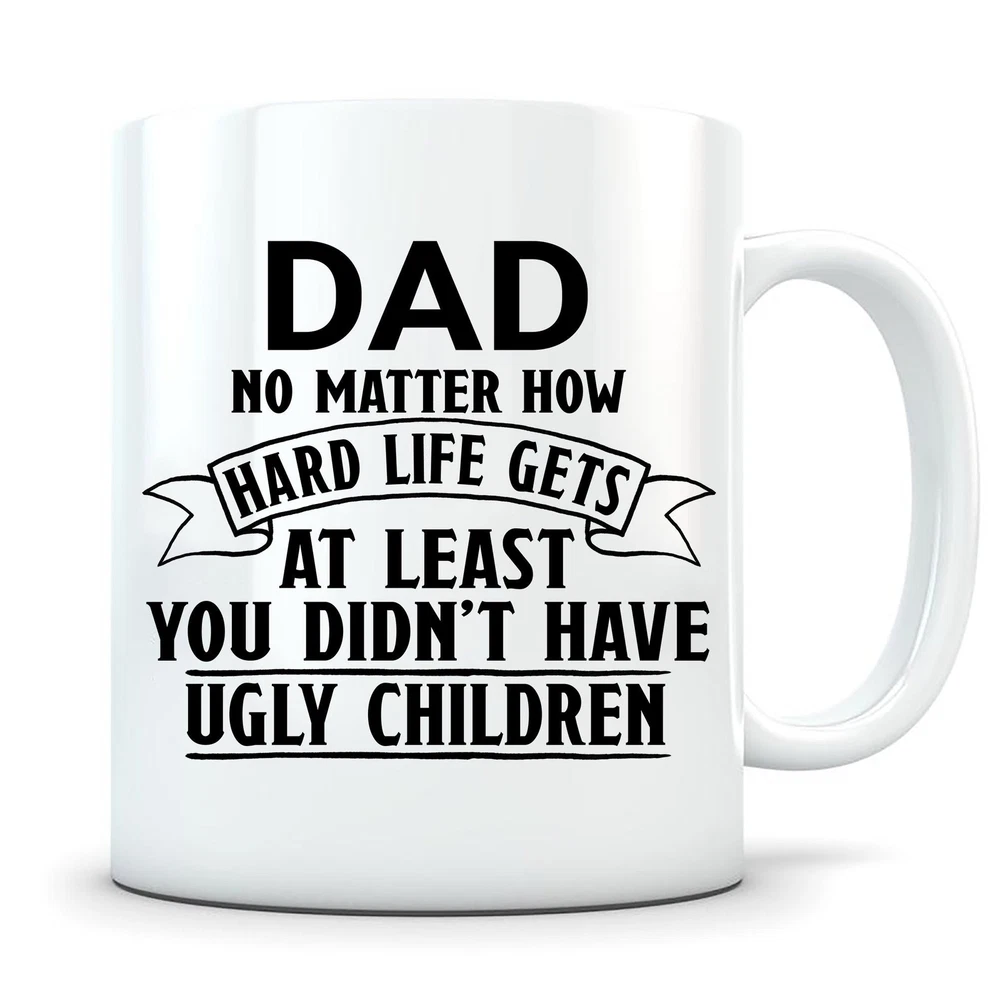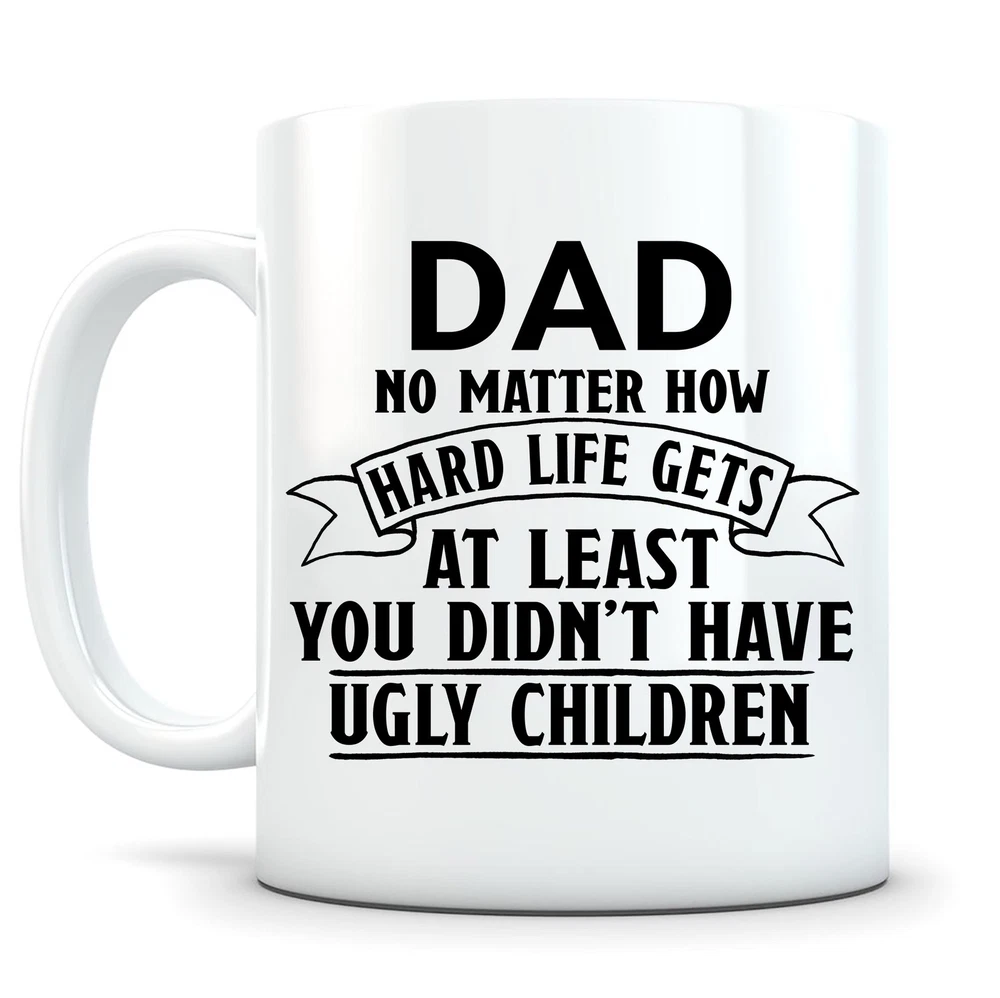 No Matter How Hard Life Gets At Least You Didn't Have Ugly Children Gift For Dad Product Details.. This high quality 11oz. ceramic white mug has a premium hard coat that provides crisp and vibrant color reproduction sure to last for years. Perfect for all hot & cold beverages. The highest quality printing possible is used. It will never fade no matter how many times you wash it. Material: 100% Ceramic. Print both sides. Dishwasher and Microwave Safe. High Gloss + Premium White Finish. Printed in the U.S.A. Personalized & Custom. We support personalized and custom mug to add custom, when placing an order, you can add notes to the "order note" in shipping address section. Also you can contact us directly via message. Shipping Info. Ready to ship in 1 to 2 business days, All products are made-to-order and proudly printed in the United States. Shipped by USPS and DHL, You will receive your order in 5-7 days. Replace & Refund. All products are defective during shipping broken, chipped will be replaced free of charge. You are not satisfied with the product, we will refund 100% money to you. If any other issues arise, please do not hesitate to message, we would be more than happy to assist you.