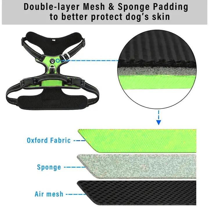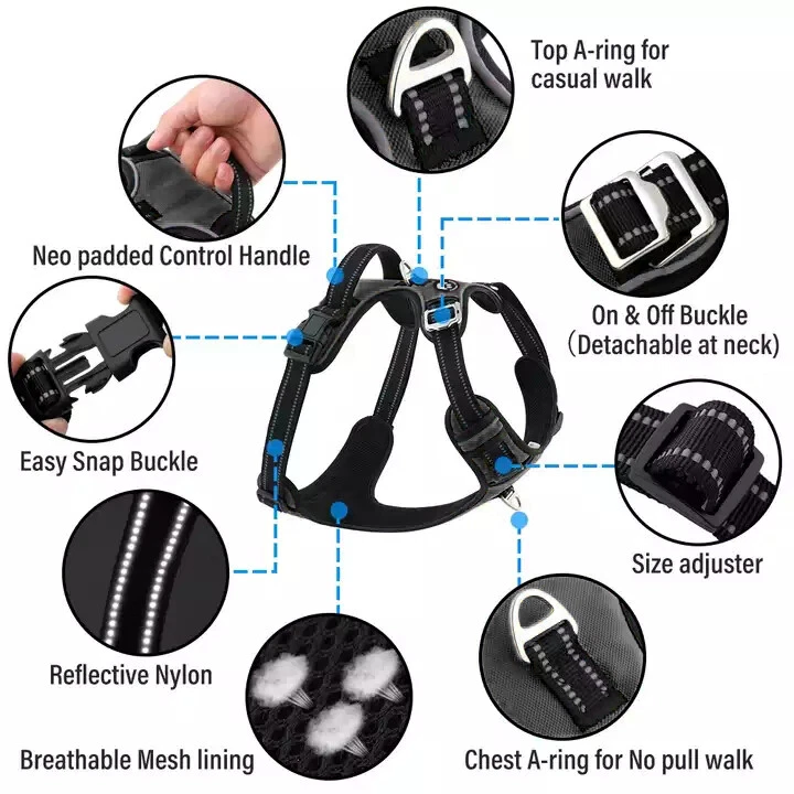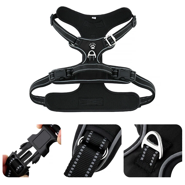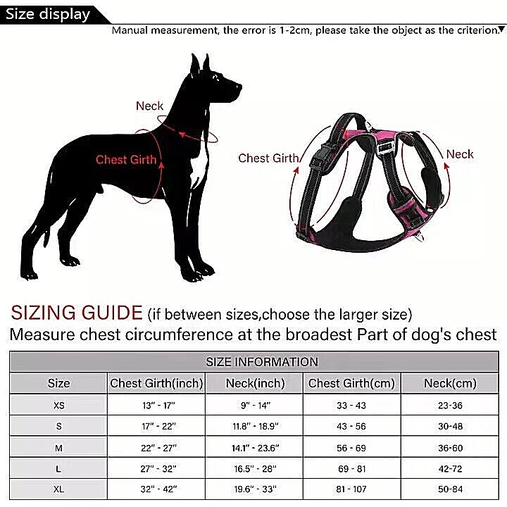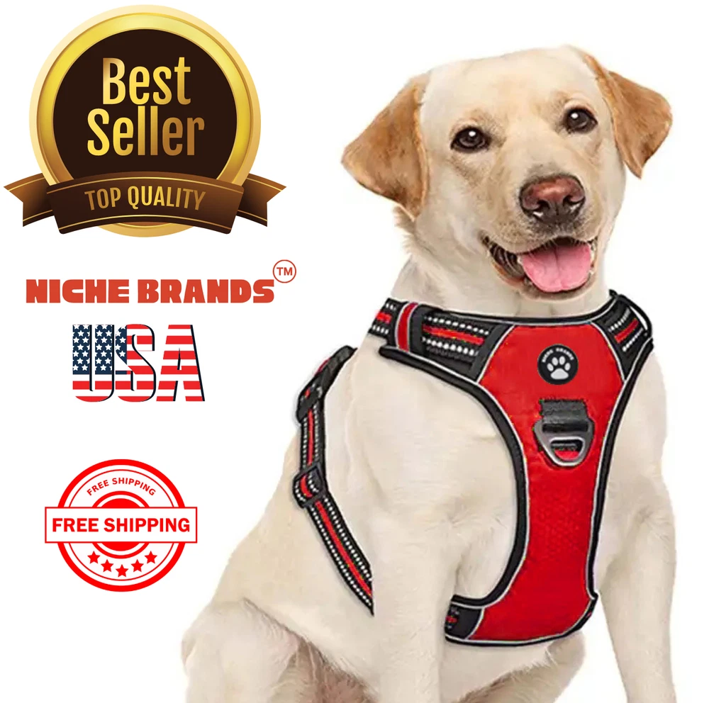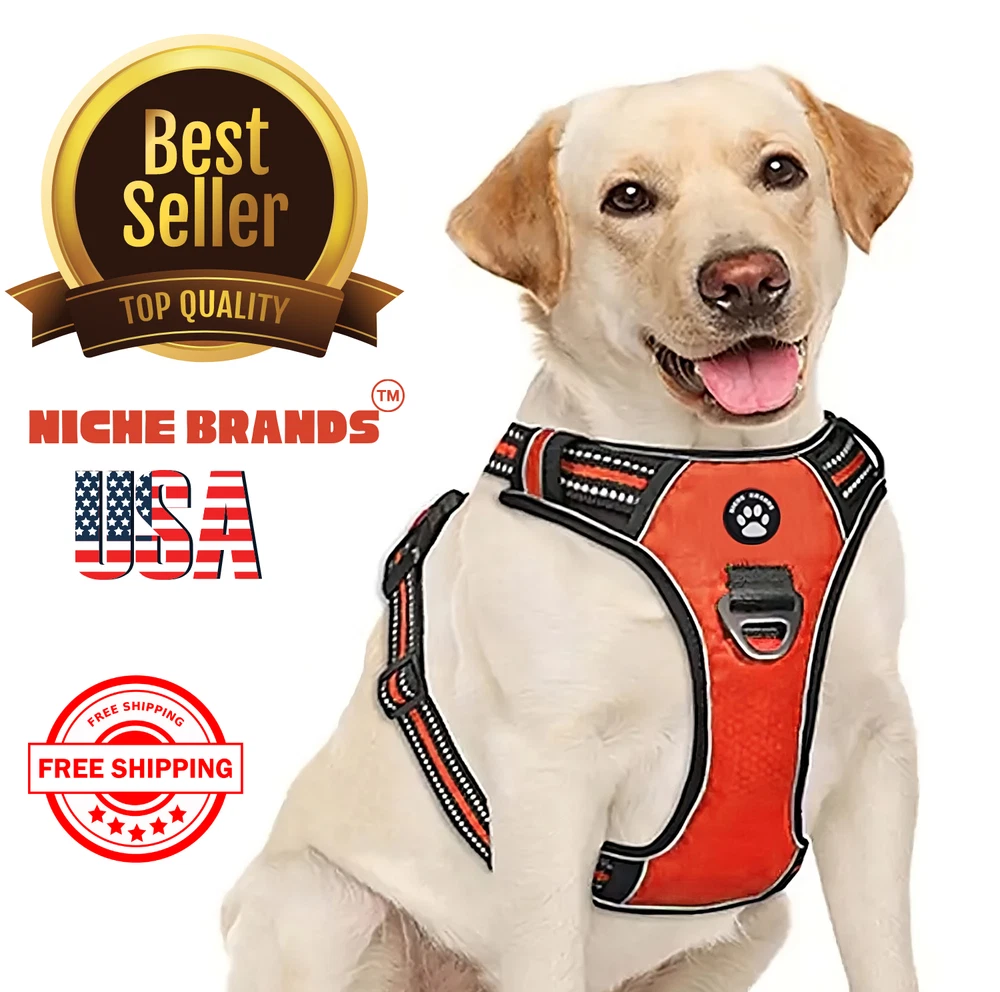 Niche Brands™ No-pull No-Choke dog harness is the ultimate solution for dog owners who want to keep their furry friends safe and comfortable while walking. Made with high-quality materials and featuring a unique design , this harness distributes pressure evenly across the chest and back to prevent choking and pulling on your dog's neck. The padded chest panel and adjustable sizing ensure a secure and comfortable fit for dogs of all sizes, while the reflective strips keep your dog visible in low light conditions. The easy-to-use buckle and leash attachment make it a breeze to put on and take off, even for the most active dogs. Adjustable Weight Pulling Harness Dog Harnesses Best New Year Gift you could give to your Dog Holiday SALE - 5% Leash needs to be purchased separately. 🐶 [ NO PULL - CHOKE RESISTANT ] - NICHE BRANDS Designer non-pull adjustable dog harness with handle features RUSTPROOF Zinc Alloy dual metal D-rings, on both sides of the dog vest. The front D-Ring helps redirect your dog's forward motion, and the back ring is perfect for a casual dog walk, jogging, hiking, training. The four Adjustable straps fit various dogs with different body shapes. With 2 easy buckles on belly straps and 1 more lockable quick release buckle on the neckline, you don’t need to slip over the dog’s head to adjust the straps all the time. 🐶 [ Pet-friendly REFLECTIVE Material ] - Our durable dog vest is made of 1200D Oxford Fabric with sturdy stitching, suitable for long-time use. Breathable padded mesh design keeps air circulation around your dog’s body and protects your dog’s skin during outdoor activities. Reflective/Lighted straps guarantee you a safe and wonderful late-night walk 🐶 [ FIT for All ] - The harness comes in different sizes and fits SMALL/MEDIUM/LARGE/XL size fur friends. Refer the sizing guide for neck and chest girth and get the purrfect size for your furry friend. Large Dog Harness fits even the fluffiest dog 🐶 [ EASE TO USE AND SECURE LOCKING ] - The dog harness with simple design, Front clips and quick snap buckles which make it easy to put on and take off. Locking feature on both snaps makes it more secure, 100% ensures NO accidental detachment. 4 easy size adjustors at neck and chest for easy adjusting to fit your dog perfectly, even with some room of growth. Perfect training vest for daily walking, running, hiking, training, hunting, outdoor adventure and more! 🐶 [ EASY CLEANING ] - Harness material is dust resistant and Machine washable and hence easy for daily use. All metal accessories are rust-proof and provides long term Durability. 🐶 [ DURABILITY ] - Made of durable nylon webbing, enhanced high density nylon oxford, breathable mesh lining and strong accessories including buckle, size adjustors making it the best harness for dog. 🙏 Customer Service - Our customers’ amazing shopping experience is always our Priority. If you have any problems while using our products, please feel free to let us know. Our customer service will effectively solve your problem in 24 hours. Niche Brands pet supplies is a company that is passionate about providing high-quality, unique and innovative products for pets. Our mission is to create a brand that pet owners can trust and rely on for their pet's needs. We understand that every pet is different and has unique needs, which is why we offer a wide range of products that cater to different lifestyles and preferences. Product Description Package includes: 1 x No Pull Dog Pet Harness Adjustable Control Vest Dogs Reflective S M Large XL Shipping Information: Free shipping - Your item Ships Same Day to 1 Business Day