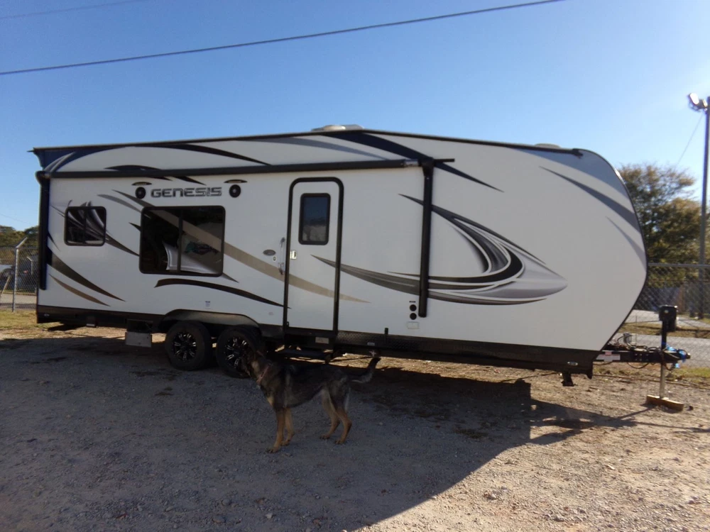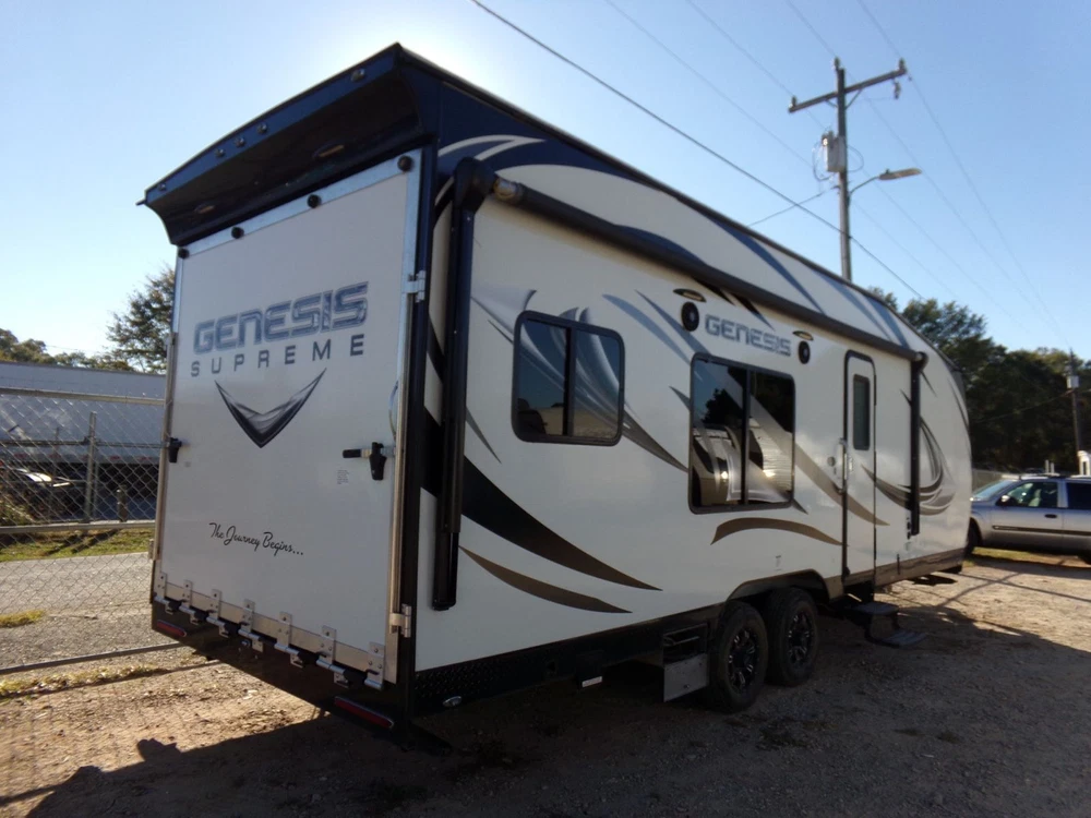 Air Conditioners: 1 Length: 32 Type: Toy Hauler VIN (Vehicle Identification Number): 1G9T12628JC469180 Model: Supreme 27FS For Sale By: Dealer Make: Genesis Year: 2018 Doors: 1 door Sleeping Capacity: 7 Mileage: 0 Vehicle Title: Clear Awnings: 1