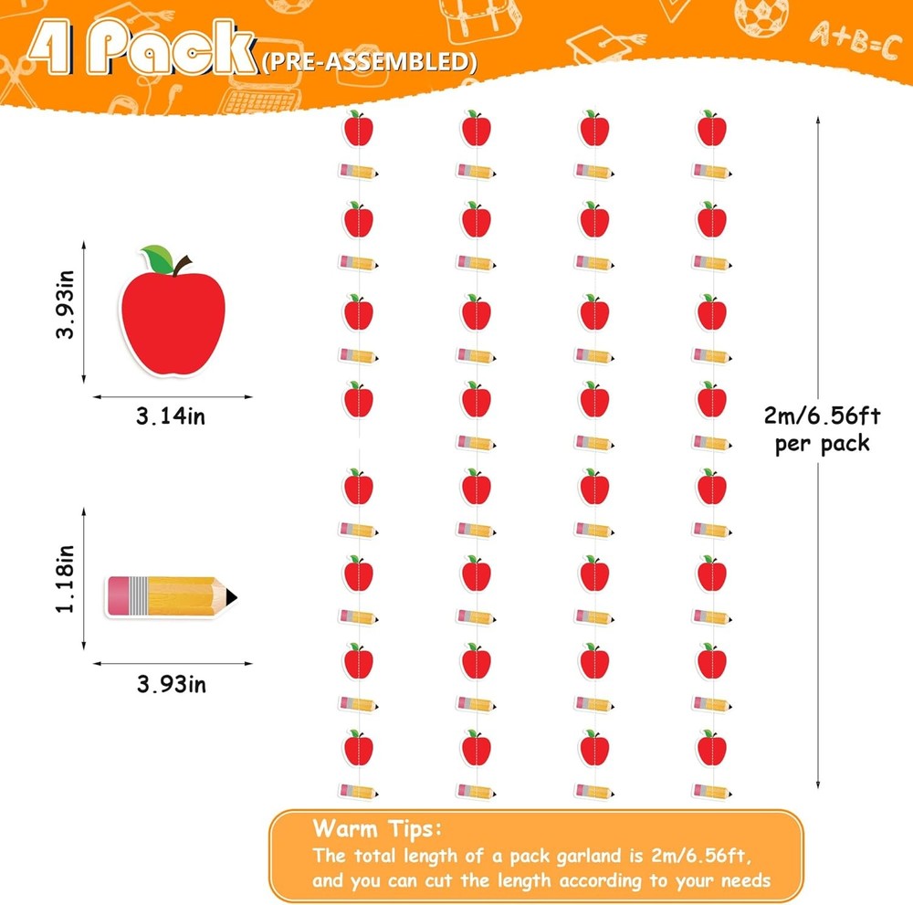 Free eBay listing template designed by dewiso.com Back to School Party Decorations - NO DIY - Welcome Back to School Hanging Decorations for Classroom Ceiling Backdrop,First Day of School Decorations for Kindergarten Elementary School Teacher Office FREE AND FAST SHIPPING! About this item 【PACKAGE INCLUDED】You will receive 4pack back to school hanging garland. The total length of a pack garland is 2m/6.56ft, and you can cut the length according to your needs. Its perfect addition to decor classroom ceiling on the first day of school. 【PRE-STRUNG & TANGLE FREE PACKAGE】We have assembled for you in advance and separating each garlands with opp bags to avoid tangling, save your time to prepare party, just hanging anywhere you like to greet friends and together enjoy happy time. 【PERFECT ADDITION TO YOUR PARTY】With our pencil Apple banner garland welcome students back to school!Which will create joyful atmosphere for first day of school,catch the students eyes! 【RELIABLE MATERIAL】The first day of school decorations are made of quality card stock, not easy to break or fade. All decorations are durable enough to be applied many times on different occasions. 【WIDELY APPLICATION】Welcome back classroom decorations can be your prior option to celebrate classroom bash. Perfect for classroom, office,children's show on the first day of school. Or as backdrop to take beautiful photos to leave great memories. Product We offer a 30-Day Return Policy on items which you are not completely satisfied with. You have the option for a full-refund or an exchange of the item. No returns are available on items shipped outside of the US . Shipping We offer Free Shipping to the US and ship within 2 business days of payment, usually sooner. We use UPS express shipping. That's why your products are usually delivered within 3 days . Contact We try our very best to make sure every customer is completely satisfied. If there's a problem , message us! We're happy to help. 24/7 live chat available.