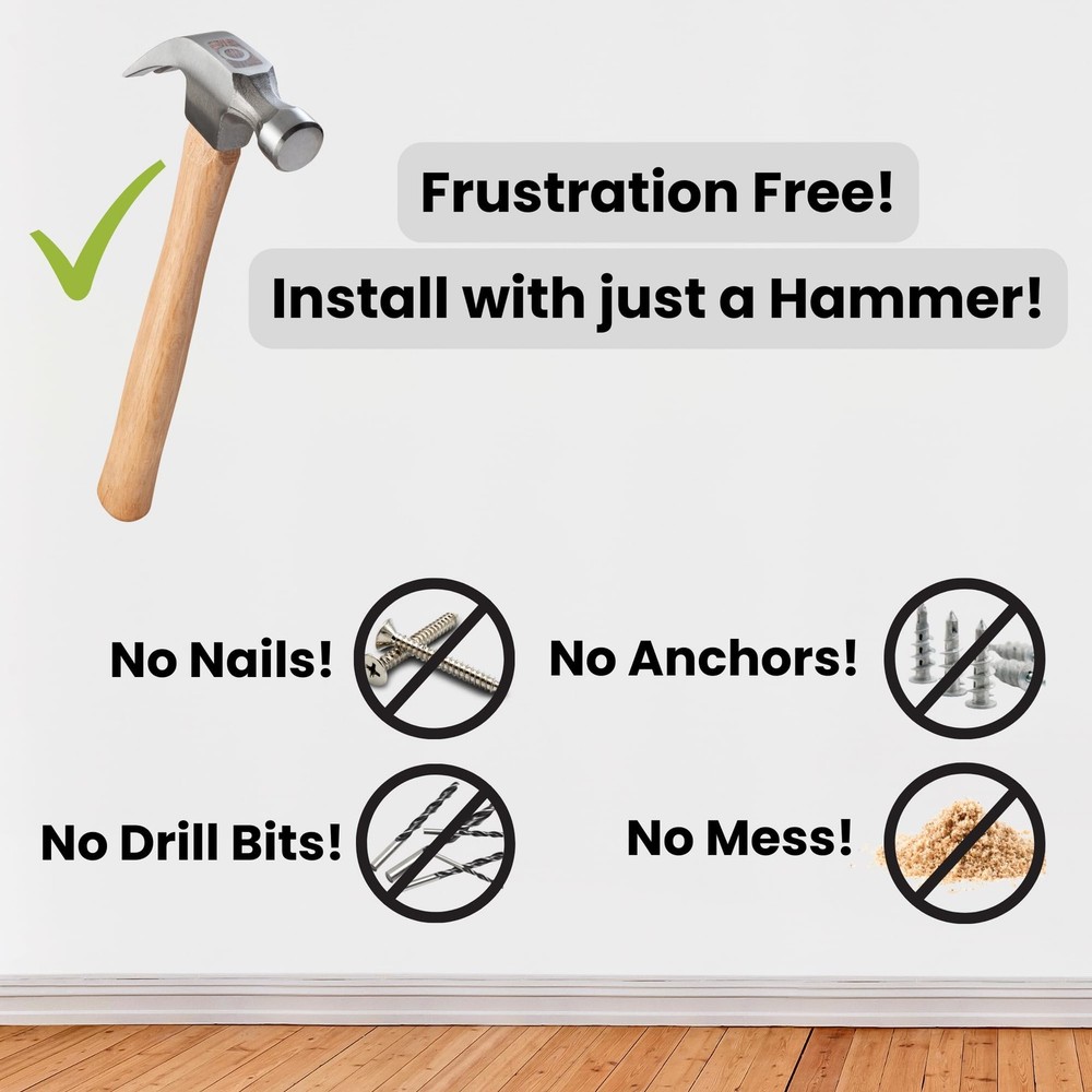 Easy Hammer-Only Installation - No need for drills, screws, or wall anchors! Install quickly and easily with just a hammer. Perfect for a hassle-free setup. No Studs or Wall Damage - Designed specifically for drywall, this mount requires no stud finding and leaves your wall damage-free. Enjoy a clean, professional installation without the mess. Compatible with Skylight 15-Inch Calendar (device not included). Not compatible with the 27” model. Seamless and Stylish Display - The wall mount keeps the Calendar flush against the wall, creating a modern, organized appearance that blends perfectly with any decor. All Hardware Included - Comes with everything you need: wall mount, mini level, and pin nails. No additional tools required—just a hammer!