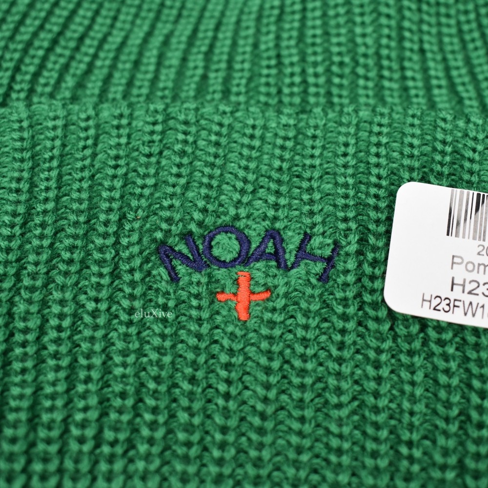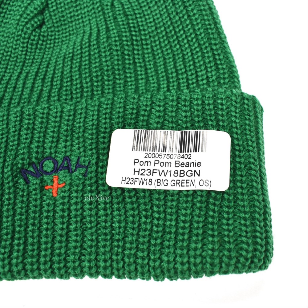 NWT Noah Green Core Logo Pom Pom Beanie Guaranteed 100% authentic and genuine DEADSTOCK, RARE BEANIE New / unworn F/W 2018 release Green rib knit Embroidered navy & red core logo on front Green pom pom on top of beanie One size fits all Original tag still attached Made in Canada All photos show actual item