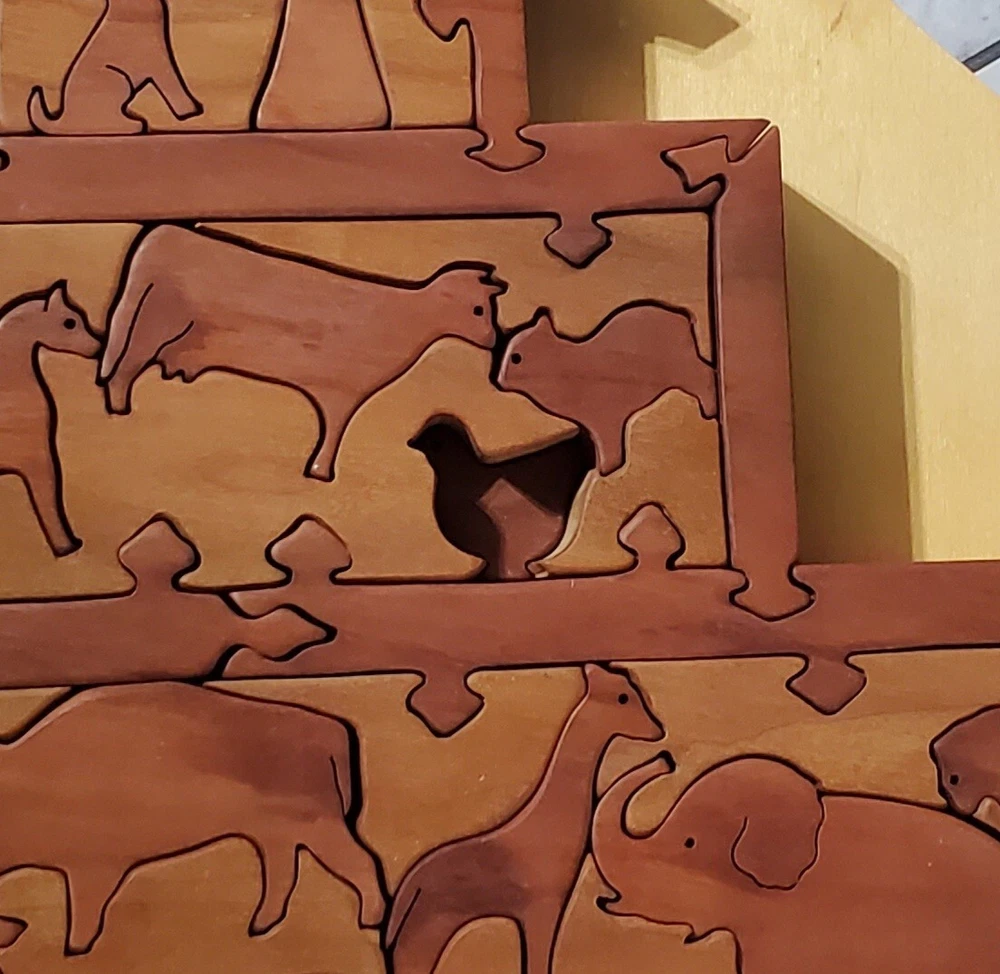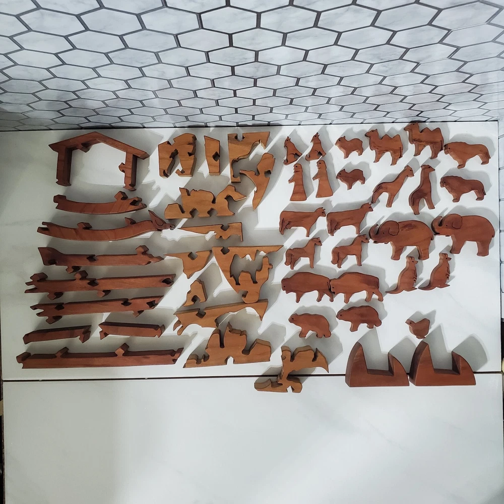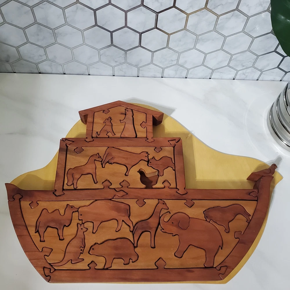 Noah's Arc Two by Two Wooden Art Animal Puzzle with Backplate & Stand 47pcs One duck piece is missing (see photos) Thank you for viewing our products. PRODUCT SOLD AS IS. Please Message With Questions Prior To Purchase. Please note: We do sell new and used items. Our used items are pre-owned / pre-loved & may show signs of wear. Please view all photos for details, size, & imperfections as they are a form of the descriptions in addition to what is stated in the description section. We will do my best to inspect each item to find the best quality items possible. If an item is sent to you NEW / SEALED and you open it or remove the tags, it is NO LONGER ELIGIBLE FOR RETURN. Opened items / Removed tags - Means the item is NO LONGER in its original state and can no longer be sold as NEW. We are often asked about shipping cost. We are excited about your purchase and take pride in your package arriving to you undamaged . We wrap and cushion all necessary items prior to shipping which adds weight to your package. Unfortunately, this is not optional. Thank you for your understanding. Thanks again!