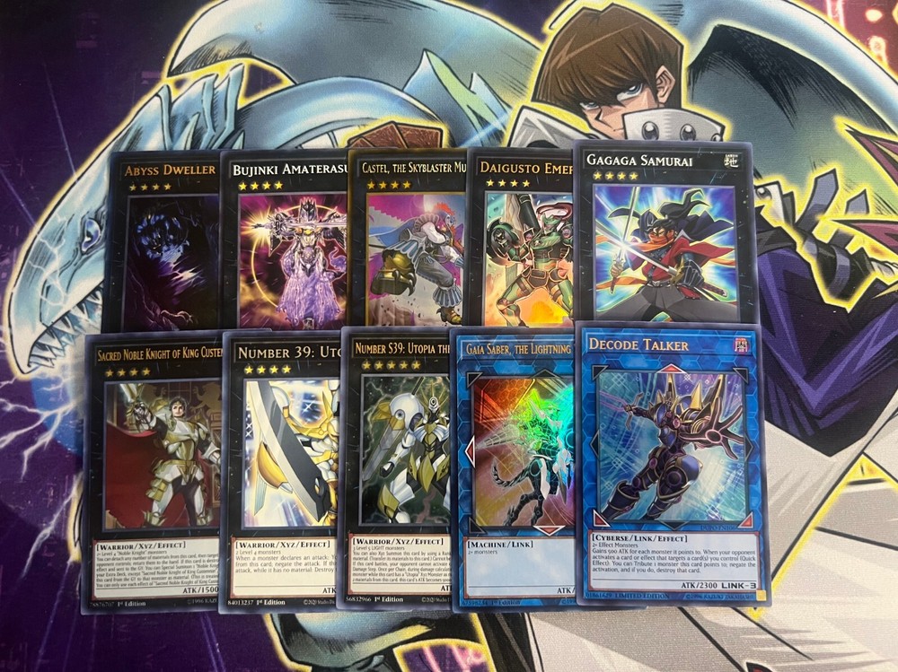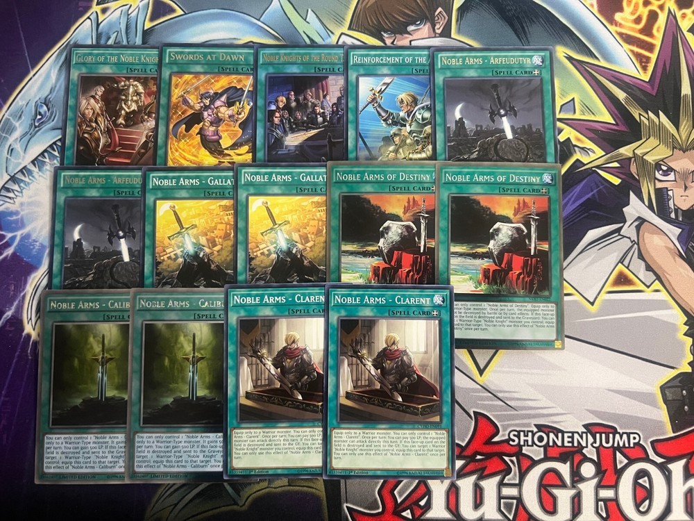 Hello! You are purchasing the deck list below, the cards will be English, real, and near mint to light play condition at worst. All decks are built with the lowest rarities for cards in mind to keep the price of the deck low and affordable for all duelists! Some cards may be in speed duel printing if this is the cheapest available copy of the card, but do not worry these are real cards and legal for tournament use! Purchase with confidence and safety! As an added bonus one pack of card sleeves will be included with your deck! Thanks again and good luck dueling! Now here's the decklist; Monsters: 1| Merlin 1| Noble Knight Custennin 1| Noble Knight Pellinore 1| Lady of the Lake 1| Ignoble Knight of Black Laundsallyn 1| Noble Knight Eachtar 1| Noble Knight Bedwyr 1| Noble Knight Peredur 1| Noble Knight Gwalchavad 2| Noble Knight Gawayn 2| Noble Knight Drystan 2| Noble Knight Artorigus 3| Noble Knight Borz 3| Noble Knight Brothers 3| Noble Knight Medraut 3| Honest Spells; 1| Reinforcement of the Army 1| Noble Knights of the Round Table 1| Swords At Dawn 1| Glory of the Noble Knights 2| Noble Arms - Clarent 2| Noble Arms - Caliburn 2| Noble Arms of Destiny 2| Noble Arms - Gallatin 2| Noble Arms - Arfeudutyr Traps: 1| Avalon 2| Rivalry of Warlords 3| Call of the Haunted Extra Deck; 1| Decode Talker 1| Gaia Saber, The Lightning Shadow 1| Number S39: Utopia The Lightning 1| Number 39: Utopia 1| Sacred Noble Knight of King Custennin 1| Gagaga Samurai 1| Daigusto Emeral 1| Castel, The Skyblaster Musketeer 1| Bujinki Amaterasu 1| Abyss Dweller