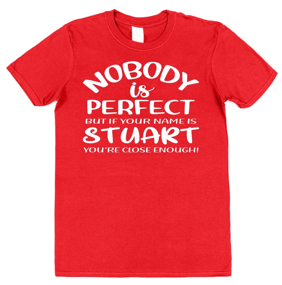 Personalised Nobody is Perfect Funny T-shirt for him. Brand new 100% Cotton. Comfortable regular fit. Great gift idea for teacher or family member. Also makes an ideal dad, grandad or uncle present for Father's Day, Christmas or his birthday. Or buy this tee and add some more humour to your own wardrobe. Click My Clobber T-Shirts are 100% cotton so are comfortable and breathable. They've been made to last with re-enforced seams to eliminate separation and double stitched hem and sleeves for durability. This T-shirt was designed and printed in the UK. We specialise in high quality T-shirt printing and provide a comfortable product that will last and last. Men’s funny slogan T-shirts are always well received gifts. Great joke gift idea for him. Grab one today. Sizes Width is measured across garment 1cm down from armholes. Length is measured from highest point of shoulder to bottom edge of garment. Small - Width 46cm, Length 71cm (To fit 34''-36'') Medium - Width 51cm, Length 74cm (To fit 38''-40'') Large - Width 56cm, Length 76cm (To fit 42''-44'') XL - Width 61cm, Length 79cm (To fit 46''-48'') 2XL - Width 66cm, Length 81cm (To fit 50''-52'') 3XL - Width 71cm, Length 84cm (To fit 54''-56'') Please contact us if you have any questions or if you can't find what you're looking for. We always do our best to help.