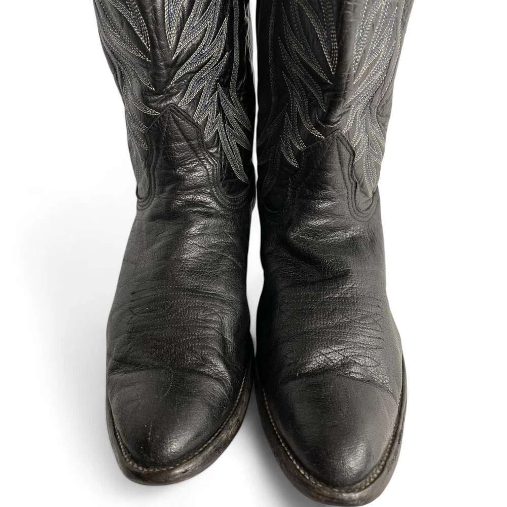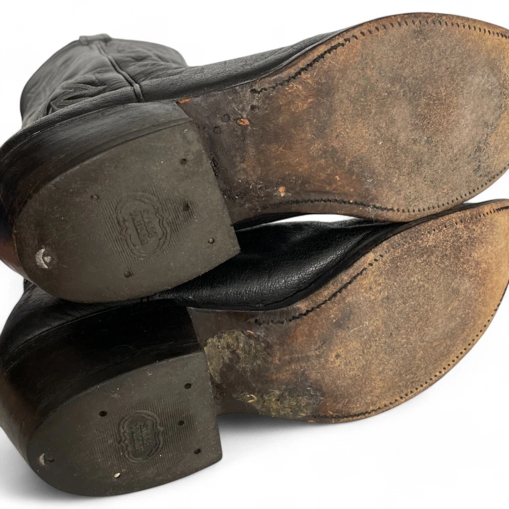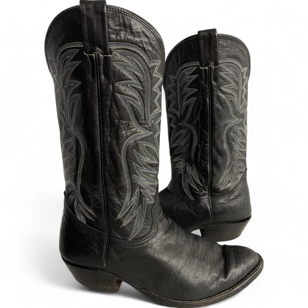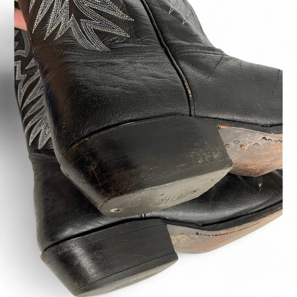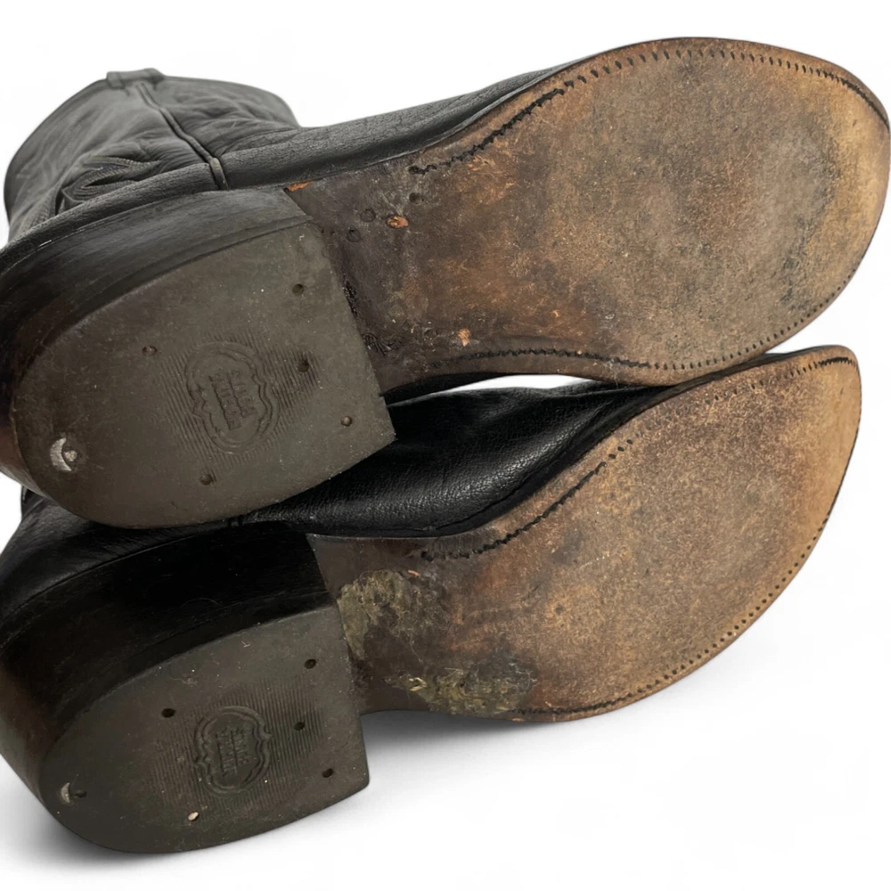 Nocona Leather Western Boots Black Cowboy Biker Wide Embroidered Men's 9.5 EE