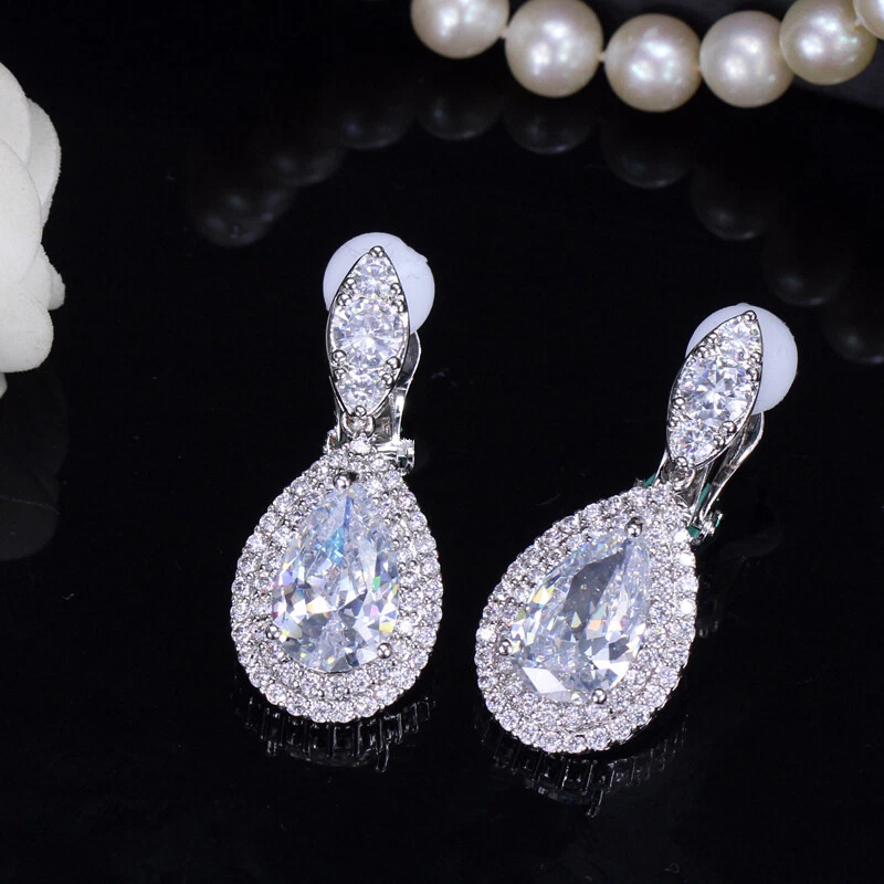 Non Pierced Clip On Water Drop Earrings Silver Plated Blue Zircon Bridal Jewelry There’s an old saying that: Jewelry is woman’s best friend. And one appropriate luxury jewelry helps to spice up your charm and beauty. And here’s the reason why you choose us: ★ We adopts high-grade Cubic Zirconia, which displays pure and fascinating color; ★ All our items are Elaborate, Gold Plated (white gold plated/yellow gold plated/black gold plated), by which the texture is smooth and with fancy look, and will be appropriate for so many occasions; ★ Our items are with Exquisite Design, which shows your excellent taste, and could catch people’s attention easily. ★ Ideal gift for mother, wife, girlfriend, daughters, brides, bridesmaids, ect. Specification Type: Clip On Dangle/Drop Earrings Stone Material: Cubic Zirconia Base Metal Material: Brass Metal Material: Silver Plated Shape: Water Drop Color: White, Blue, Red, Green Suitable Occasion: Daily, Holidays, Party, Engagement, Wedding, Anniversary, Valentine’s Day, Carnival, Performance, ect. Package Includes 1 Pair of CZ Clip On Drop Earrings Please note: *Please bear in mind that there might be 1~2cm difference due to manual measurement. *Our digital images are as accurate as possible. However, different monitors may cause colors to vary slightly. *We offer after-sale service, if there is any item problem, please feel free to contact us via eBay message first, your kind understanding is much appreciated. About Us Payment Shipping Returns Contact us About Us Topjewel33 is a newly-established online store which dedicates to provide excellent luxury jewelry products, such as earrings, rings, necklaces, bracelets, brooches, hair accessories, and high grade jewelry sets. We target worldwide market, and we strive for offering you unbeatable low price and satisfied customer service. Payment We accept PayPal payment only. Payment must be received within 7 days from the date of purchase. Shipping We do hope all our customers could receive the order asap, so normally, the order will be sent out within 2 working days. And as the delivery is handled by the third party, sorry that we could not guarantee which date you could receive the package. And sometimes the delivery might be a little bit delay, especially in high volume or holiday seasons. However, please don’t worry and feel free to contact us via eBay message, and we will do our best to help. And we sincerely apologize for any inconvenience may cause. Sometimes custom tax might be required, and we are afraid that it will be covered by the buyers, thank you for kind understanding. Returns We provide 30 days money back return policy. And if you have any problem with the item, please make sure the item is in the original package and feel free to contact us via eBay message first, thank you for kind understanding and cooperation. Contact us We offer customer service, if you have any problem with the item before/during/after the purchase, please feel free to contact us via eBay message, and we will get back to you asap. Thank you for your kind patience.