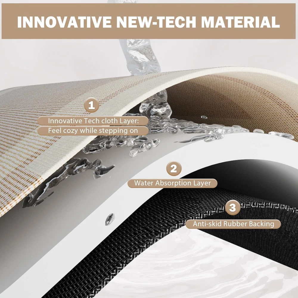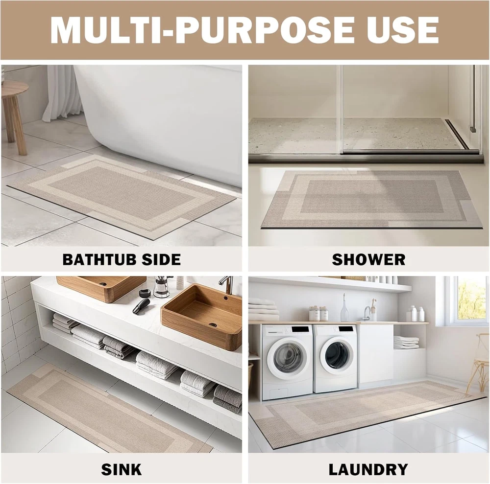 This bath mat is a game-changer for any bathroom! The ultra-thin design fits perfectly under doors, and the strong rubber backing keeps it securely in place—no slipping at all. It dries super fast, absorbs water well, and is easy to clean. The beige color adds a nice touch of elegance, and the quality feels durable. Plus, the customer service is top-notch with fast shipping. Highly recommend for a safer, more stylish bathroom!