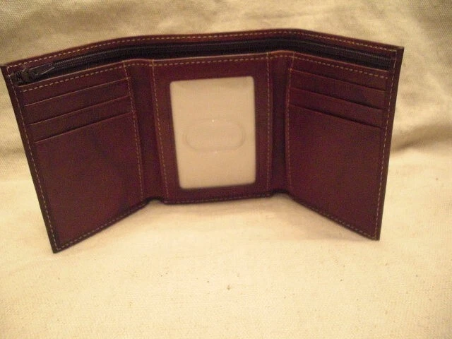 STYLE: Trifold COLOR: Brown MATERIAL: Leather DIMENSIONS: open 9"x 4-1/8" closed 3-1/4"x 4-1/8" LOCATION: A-2 DESCRIPTION: 1 money slot, 1 zippered money slot, 6 credit card slots, I.D. window All our items are authentic so purchase with confidence SHOP MY STORE FOR MORE LEATHER GOODS AND ACCESSORIES