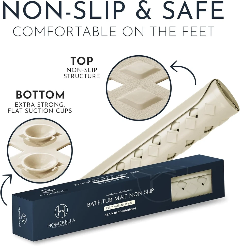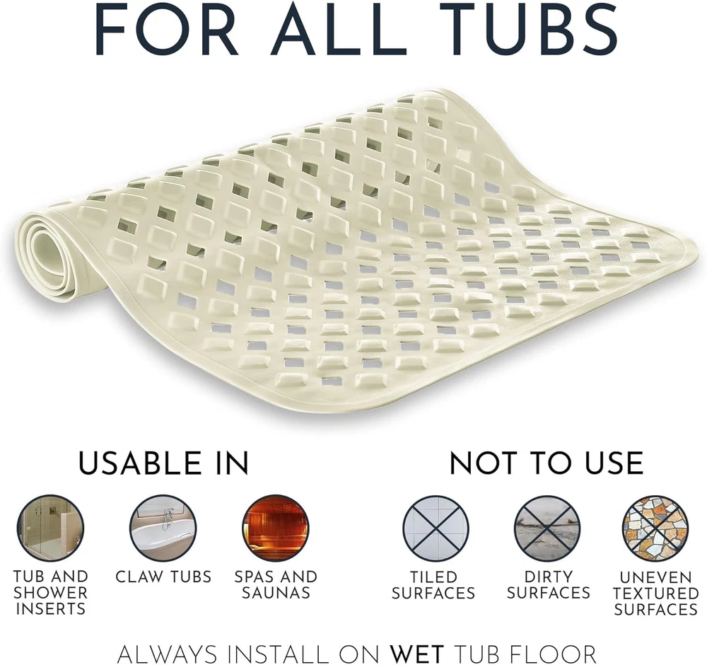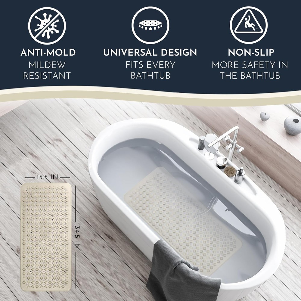 Anti-Mold Bathtub Mat 35x16 - Non-Slip Vinyl with Suction & Hooks for Safety ‹ › ‹ › ‹ › ‹ › ‹ › ‹ › ‹ › ‹ › ‹ › Anti-Mold Bathtub Mat 35x16 - Non-Slip Vinyl with Suction & Hooks for Safety Features: Durable, eco-friendly vinyl construction for longevity. Over 250 anti-slip suction cups ensure a secure grip on any smooth surface. Special anti-slip structure on the mat's top to prevent slipping while in use. Mold and mildew resistant, ensuring a hygienic bathing environment. Machine washable on cold wash for easy cleaning and maintenance. Extra large holes allow water circulation and optimal draining, preventing water buildup. Made from skin-sensitive materials: odorless, latex-free, and BPA-free, making it suitable for all ages. Includes 2 self-adhesive hooks for convenient drying and storage, removable without residue. Benefits: Provides a secure, non-slip surface for a worry-free bathing experience. Resists mold and mildew growth, ensuring a clean and safe mat for everyone. Machine washable for effortless upkeep. Perfect for families with babies, elderly, pregnant women, and pets, offering them a safe bathing environment. Easy to dry and store, eliminating damp mats hanging on your bathtub. Why choose our Anti-Mold Bathtub Mat? Elevate your bathing experience with our Anti-Mold Bathtub Mat, thoughtfully designed for safety, comfort, and hygiene. With over 250 suction cups ensuring a non-slip surface and a design that resists mold and mildew, this mat is a perfect choice for every household. From babies to the elderly, everyone deserves a safe environment while bathing, and our mat delivers just that. Don't compromise on safety and comfort in your bathroom. Order your Anti-Mold Bathtub Mat today and enjoy peace of mind every time you step into your tub! Shipping Free & Fast Shipping - We offer free shipping to most of the USA with a normal delivery time of 3-7 days. However, due to the current situation, additional delivery time (up to 3 weeks) may be required for some items. Alternative Carriers - We may use alternative carriers (e.g. USPS, FedEx, UPS, etc.) to ensure your package arrives safely and on time. Due to the use of multiple carriers, we are unable to provide a tracking number automatically. Handling Time - Orders are processed and shipped within 1-2 business days of receiving cleared payment. Shipping Restrictions - Shipping to Alaska, Hawaii, Puerto Rico, Guam, and other US territories may incur shipping charges or delivery restrictions. Please contact us before ordering, or your order can be refunded/cancelled. State Restrictions - There may be restrictions based on your state of purchase. For example, certain items may not be shipped to California due to state regulations. Contact for Tracking Updates - If you require tracking updates or have any concerns about the delivery of your order, please feel free to contact us, and we will be happy to assist you. Return 30-Day Hassle-Free Returns - We want you to be completely satisfied with your purchase. If you are not, you can return the item within 30 days of receiving it for a full refund or exchange. Easy Return Process - To start a return, simply contact us and we will provide you with a prepaid return shipping label and detailed instructions. Restocking Fee - There are no restocking fees for returns. However, the buyer is responsible for return shipping costs if the return is not due to a seller's error. Refund Processing Time - Refunds will be processed within 5 business days of receiving the returned item in its condition. Payment We accept all major credit cards, PayPal, and Apple Pay for your convenience. Your payment information is secure and encrypted to ensure a safe and seamless transaction. Please complete your payment within 3 days of purchase to avoid any delays in shipping. Feedback Your feedback is extremely important to us. We strive to provide the best products and customer service possible. If you are satisfied with your purchase, please take a moment to leave us a positive review. If you have any concerns or issues with your order, please contact us before leaving negative feedback. We are committed to resolving any problems and ensuring your satisfaction. Contact Us If you have any questions or concerns, please feel free to out to our customer support team. You can contact us through the eBay messaging system. We are available Monday to Friday, 9:00 am to 5:00 pm EST, and we will do our best to respond to your inquiry within 24 hours. Buy it now and enjoy a pleasant shopping experience! Item Height: Non Slip Bath Mat Unit Quantity: 1 Material: Vinyl,Eco-Friendly,Latex-Free,BPA Free Set Includes: Bath Mat Room: Bathroom,Indoor/Outdoor Features: Anti-Slip,Mold Resistant,Machine Washable,Odorless,Antibacterial,Easy Drying Department: Adults,Kids,Teens,Unisex Baby & Toddler Care Instructions: Do Not Iron,Do Not Tumble Dry,Machine Wash Type: Bath Mat Color: Sand Number of Items in Set: 1 Shape: Rectangle