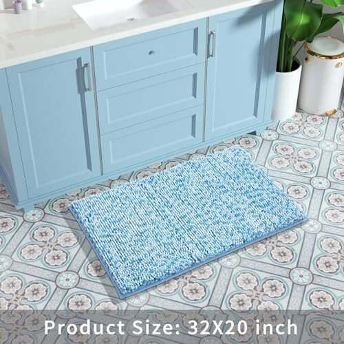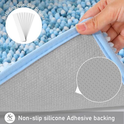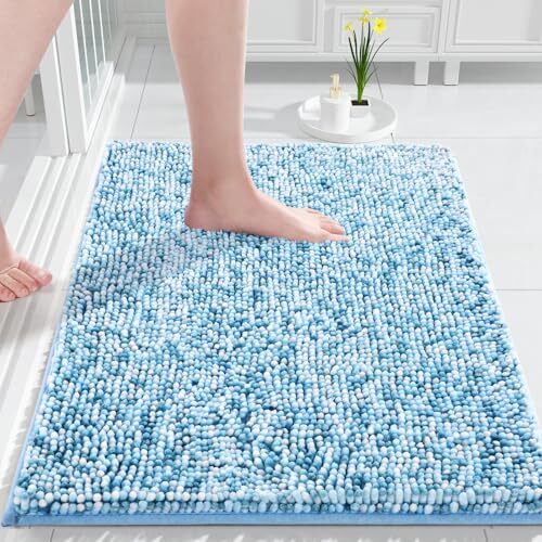 1. This bath mat feels like stepping on a cloud – so soft and plush! The non-slip backing keeps it securely in place, and it absorbs water quickly. The blue and light blue colors add a refreshing touch to my bathroom. Easy to toss in the wash, and it comes out looking like new. Perfect size too! Absolutely love it.