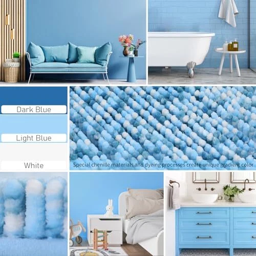 Color: Blue & Light Blue Pattern: Gradient Size: 32''x 20'' Product Care Instructions: Machine Wash Is Autographed: No EAN: Does Not Apply Batteries required: No Type: Does Not Apply Weave Type: Machine Made Item Weight: 1.76 pounds Is Stain Resistant: No Style: Modern Construction Type: Machine Made UPC: Does Not Apply MPN: Does Not Apply Pile Height: High Pile Theme: Clouds Manufacturer: Does Not Apply Special Feature: Absorbent, Fluffy, Non Slip, Washable Item Thickness: 1 Inches Occasion: Housewarming Indoor Outdoor Usage: Indoor Back Material Type: Rubber Material: Chenille Brand: Does Not Apply Item Height: 1 Product Dimensions: 32"L x 20"W Rug Form Type: Bath Mat Item Width: 1 gtin13: Does Not Apply Room Type: Laundry Room, Bathroom, Bedroom, Living Room Item Length: 1 Age Range Description: Adult