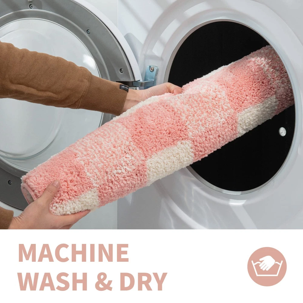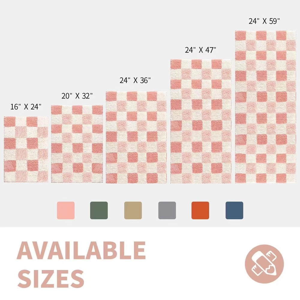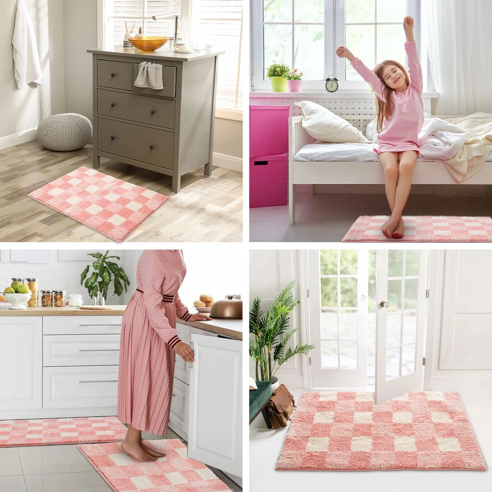 Non-Slip Checkered Fluffy Microfiber Bath Mat Absorbent for Bathroom