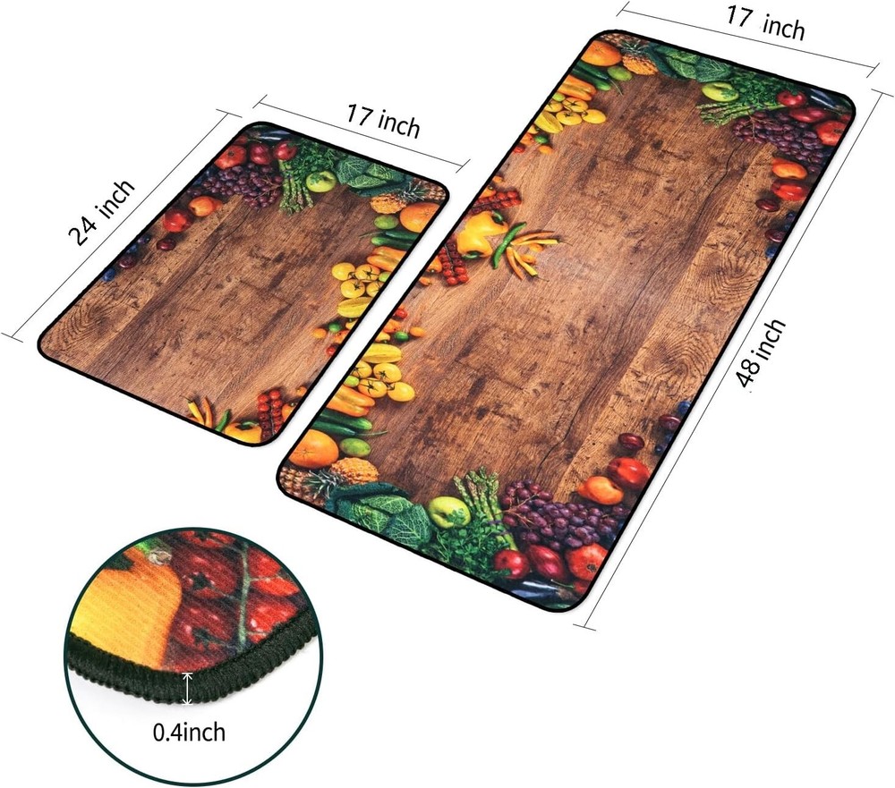 1. Love these kitchen rugs! The non-slip backing keeps them securely in place, and the set of two sizes gives me flexibility to arrange them anywhere. They’re super soft underfoot and easy to clean—just toss them in the wash. The cute teapot design adds a cozy touch to my kitchen. Perfect for standing long hours while cooking, and the quality feels durable. Got them as a gift, and they were a huge hit! Highly recommend for anyone looking to add comfort and style to their home.