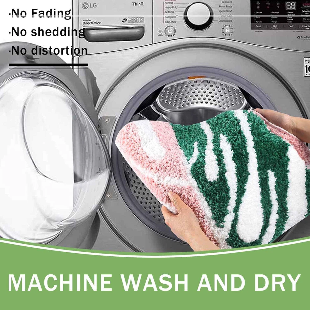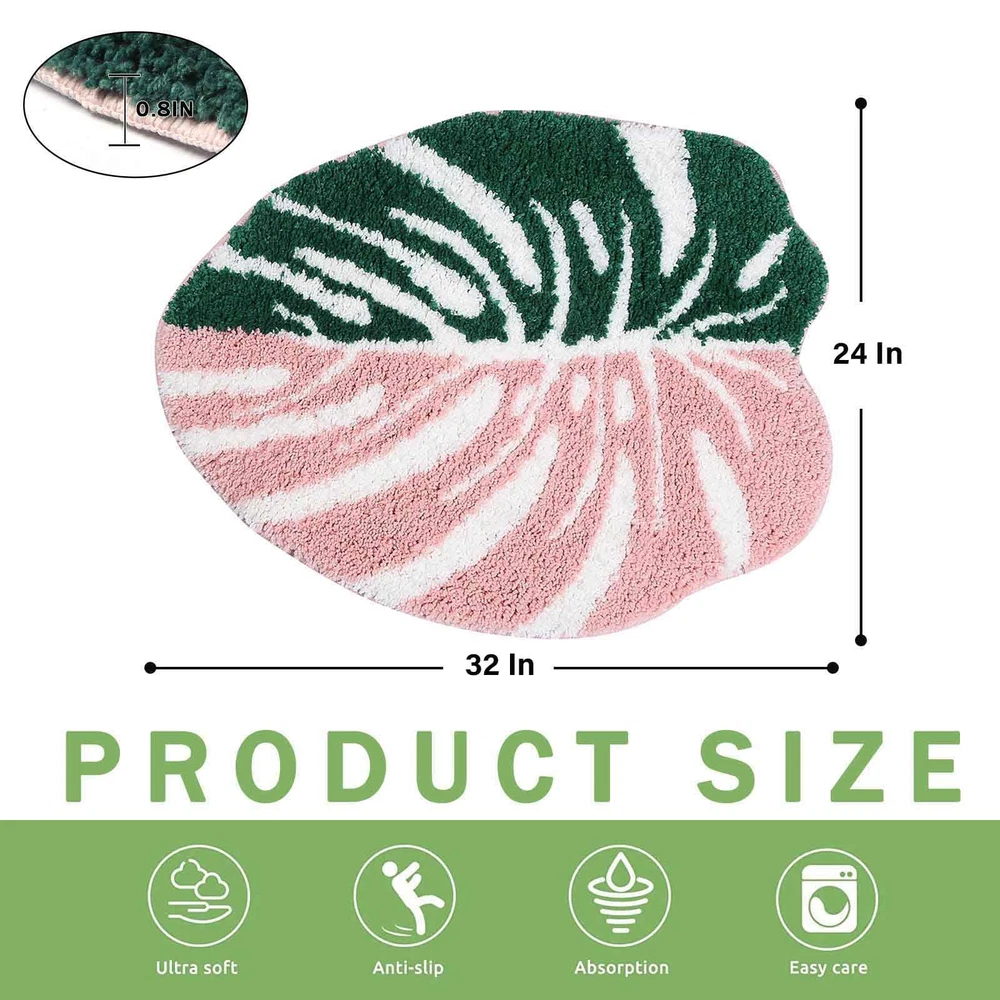 PAMPER YOUR FEET: Sink into the dreamy softness enveloping your feet after your bath. This soft green bath mat is made out of microfiber shag for the plushest sensation that will make you feel luxuriously pampered. Soft pile that soothes tired feet and shields toes from the cold floor. ULTRA ABSORBENT: Instantly dry your feet as you step out of the shower just by standing on this magically absorbent shaggy leaf bath rug. Cute bathroom mats also soak up excess water or splashes, keeping floors clean, dry. Don’t let water pool on the floor. NON SKID TPE BACKING: The monstera leaf bath mats for bathroom have a nonslip rubber backing and are to provide an anti-slip surface to step on after you’ve taken a bath or shower, cradles and protects you from falls. TPE Rubber mats can be washed and dried over and over again for long-lasting use. Note: Please make sure it is on a clean and dry floor or it may pose a hazard. EASY CARE: The green leaf bathroom mat is easy to clean. Machine wash separately with cold water and mild detergent (no chlorine or bleach) tumble dry at low speed, tumble dry low or hang dry. Without losing its soft feel or sharp color, no matter how many times you wash and dry it. SPECIAL DESIGN: A cute bath mat that will surprise you! This leaf rug fully recreates monstera leaves, with vivid greens and great detailing that will brighten up your bathroom. it is a brand new bold design to liven up your bathroom.