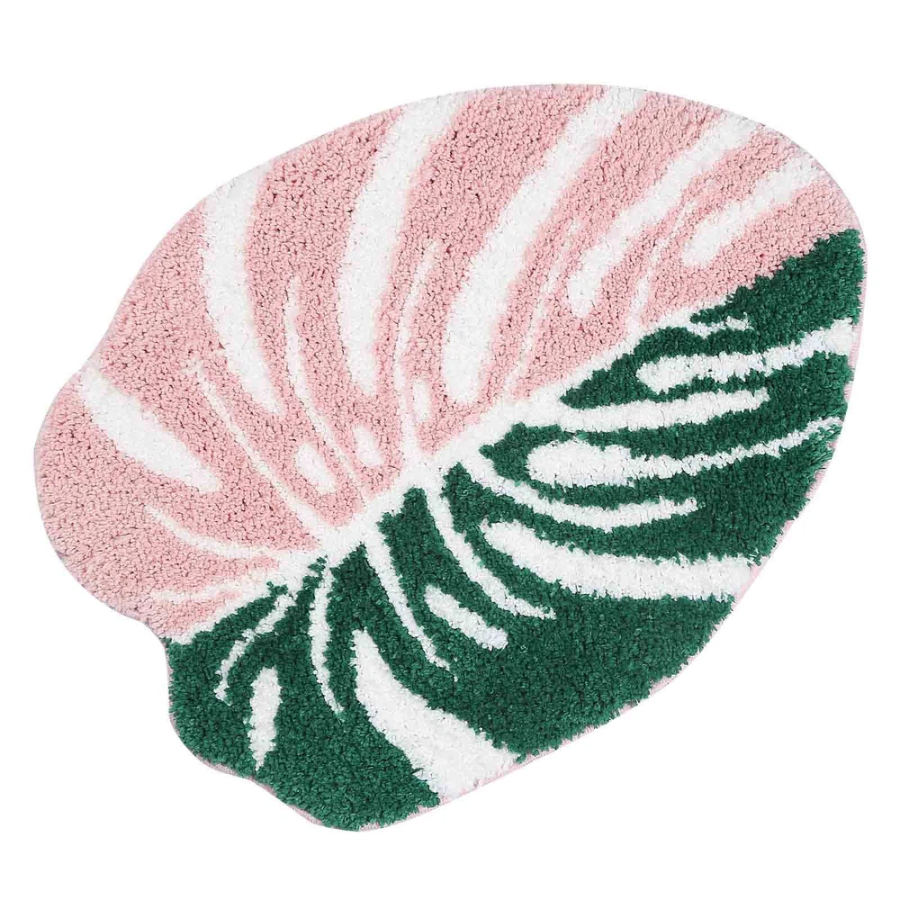 Non-Slip Monstera Leaf Bath Mat - Soft Absorbent Green Bathroom Rug