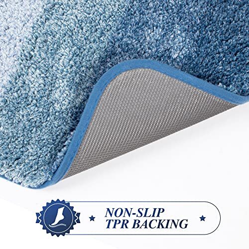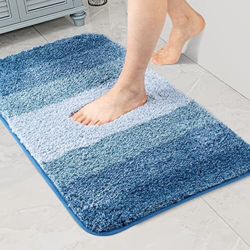This bath mat is super soft and plush—perfect for stepping out of the shower! The ombre blue color looks elegant, and it absorbs water quickly. Love that it’s machine washable and stays non-slip even when wet. Great quality for the price!