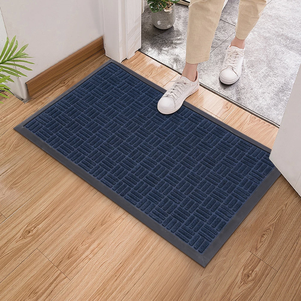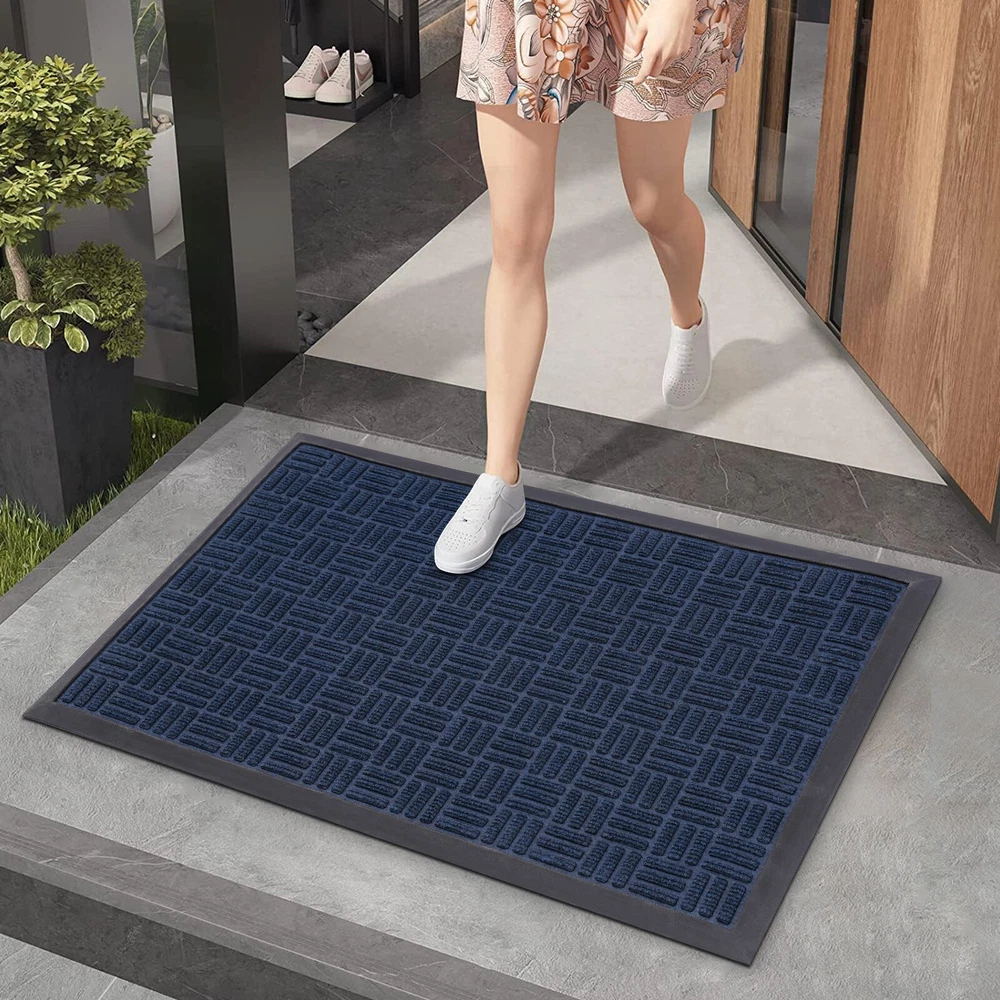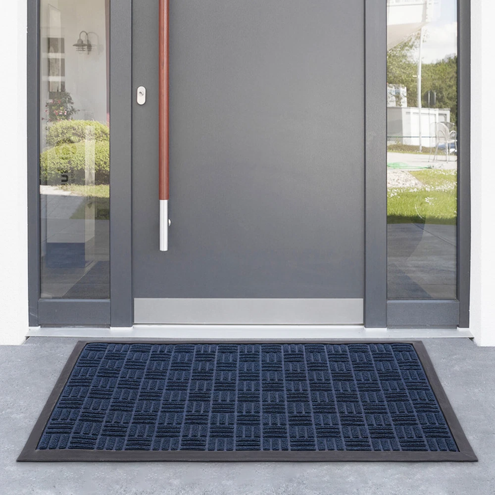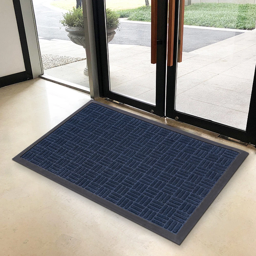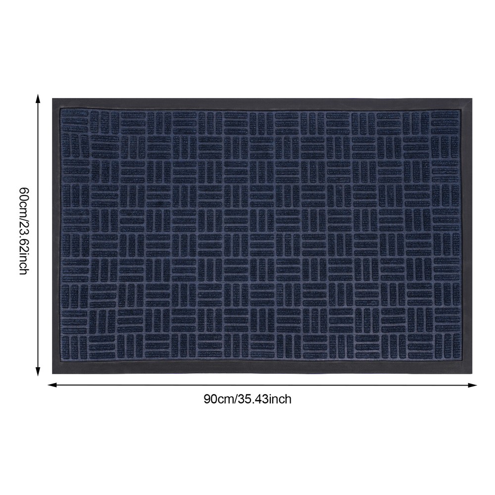 Welcome Mats Front Door Mat for outside Entry Rugs Entryway Outdoor 90*60cm Description The warmth of home, from the first step into the door to start ——for you to recommend our entry floor mats, a set of beauty, practicality, and quality in one of the good home products. It is made of high-quality materials, after exquisite craftsmanship, easy to adapt to a variety of home styles, and instantly enhances the overall home style, highlighting the unique taste. It has a unique non-slip design, for your safe plus an invisible line of protection, so that you and your family are in and out more at ease. Shop now and make every step home full of warmth and happiness! Key Features Sturdy and Durable: The product is made of high-quality polyester and synthetic rubber , using a hot melt implantable process to firmly bond the top layer (polyester surface) to the base layer ( synthetic rubber bottom), with high strength, f ade-resistant, eco-friendly, and non-toxic. Keep Indoor Clean: The product's surface features a grooved design that creates a retention dam to help catch dirt, dust, and other stray debris from getting inside. The high-quality polyester fabric on its surface absorbs moisture. The high edges around the doormat can effectively catch excess water, preventing the floor from getting wet on rainy days. Humanized Design: The non-slip rubber bottom gives the product a good grip on the ground, thus you can provide higher safety for your family to use. Also, the three-dimensional textured design increases its surface friction to prevent you from slipping. Ready to Use: This product is molded in one piece, so you can use it as soon as you receive it, eliminating the need for complex installation. Adjustable Size: This product is cuttable and foldable, so you can cut it to any size and shape you need for different-sized entries. Easy to Clean: Its simple construction allows you to easily clean it with water and a dust catcher for your convenience. Convenient Storage: Thanks to its good toughness, it can be rolled up and stored without taking up too much space. Stylish Design: The blue 、Grey color and minimalist design make this product modern and stylish, which blends well with other furniture decorations. Nice Gift: Thanks to its minimalist design and practical function, you can choose this product as a housewarming gift for your friends. Details Soft Edges: It has soft material on all sides for easy curling. Suitable Thickness: The 5mm thickness can prevent water from seeping into the floor and gives the product good shock absorption and tear resistance , making it soft and comfortable to step on. Moreover, It won't hinder the door from opening and closing, ideal for daily use in high-traffic areas. Application This product is suitable for indoor and outdoor use, such as entrance hall, bathroom, toilet, living room, hotel lobby, office, office building, gate, pavement, patio, garage, barn, driveway, and so on. Specifications Material: Polyester, Synthetic Rubber Process: Hot-melt Planting Style: Morden Color: Blue 、Grey Mount Type: Floor Mount Shape: Rectangular Assembly Required: No Thickness: 0.5cm/ 0.2 in Gross Weight:1.7kg/3.75 lbs Net Weight: 1.62kg/3.57 lbs Product Size: 90*60cm/35.43*23.62 in Package Size: 62*11.5*11.5cm/24.41*4.53*4.53 in Package Included 1* Entry Floor Mat Notes Please note that the product is shipped rolled up, but it still lays completely flat immediately when you use it. Please note that mat sizes are approximate as rubber shrinks and expands in conjunction with temperature and time. Please keep it away from fire, flammable materials, hazardous materials, scrapers, and other sharp objects. If any odor is found after receiving the product, please ventilate the product in a cool place for 2-3 days. If you are particularly sensitive to odors, you can extend the ventilation time. Please allow the slight color difference caused by the shooting light and 1-3cm error due to manual measurement, and make sure you do not mind before you order. Payment Delivery details Terms of sales About us Contact us Payment We accept ebay payment 。 Fees such as import duties, taxes are not included in the item price or shipping costs. These charges are the buyer's responsibility. Delivery details Shipping: 2-9 working days to: USA Terms of sales We maintain high standards of excellence and strive for hundred percent customer satisfaction. Feedback is very important to us. We hope that you contact us immediately before you give neutral or negative feedback, so that we can address your concerns. It is impossible to address issues if we do not know about them! About us Your satis faction is our ultimate goal. We work hard to earn your trust and future business. Our certified technicians have tested each item before shipping. The unit comes with 1 year limited warranty on all manufacturing defects. a) If you receive a defective item, you may return it or ask for a discount. Please contact us within 14 days after you receive the package. b) What you returned must be intact and in its original packaging as re? u. Customer is responsible for shipping costs of the returned item. c) We will cover the cost of shipping back t with the shipping rate indicated in the registration page. We will send you a new unit or refund the full payment you paid. Thank you. Contact us Business Hour Business Hour: Monday To Friday: 8:30 AM to 5:00 PM (Beijing China time) Due to time zones, our reply to your questions may not be immediately. But within above working time, we will reply your email within 24 hours. If it's non-workdays, please kindly be patient and wait till Monday. Please contact us with ebay message. Please feel free to contact us if you have any questions. Monday To Friday: 8:30 AM to 5:00 PM (Beijing China time) Due to time zones, our reply to your questions may not be immediately. But within above working time, we will reply your email within 24 hours. If it's non-workdays, please kin